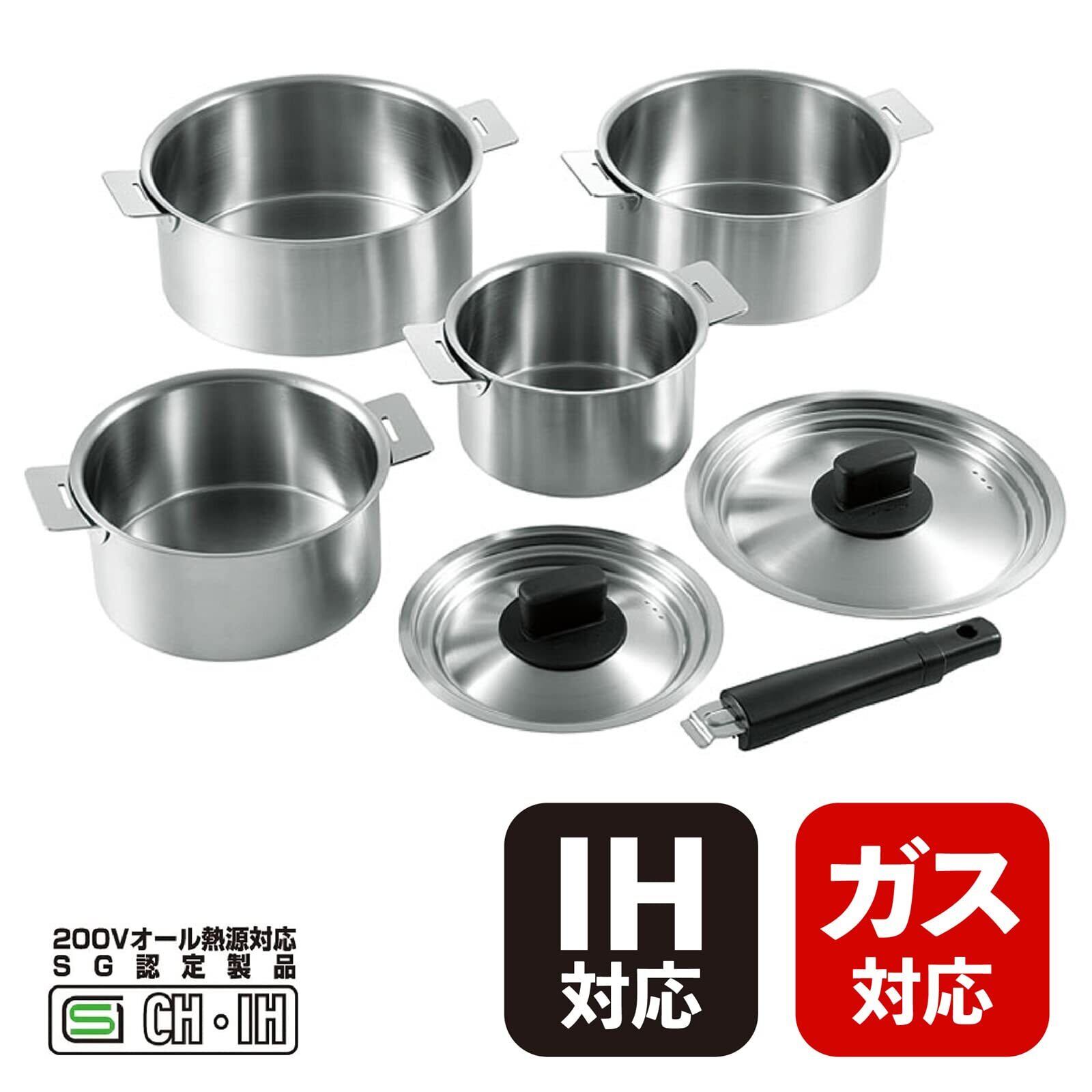 ●【商品説明】●片付けが楽で邪魔にならない、ワンタッチ鍋セットです。●簡単にハンドル(持ち手)が取り外せるので、狭いガスコンロやIHヒーターの上でも邪魔になりません。●着脱鍋、着脱ハンドルで重ねてスリムに収納でき、省スペースにおさまります。●ガスコンロでもIHクッキングヒーターでも使えます。●新生活、引っ越しなどキッチン道具をそろえる方におすすめです。●【セット詳細】●鍋14cm、鍋16cm、鍋18cm、鍋20cm、兼用鍋蓋(14cm、16cm用)、兼用鍋蓋(18cm、20cm用)、着脱ハンドル:各1●【原材料】●本体、蓋・・・ステンレス鋼取っ手、蓋ツマミ・・・フェノール樹脂台座・・・66ナイロン●【規格概要】●【14cm鍋】本体サイズ:約縦35.4*横15.5*厚さ12cm本体重量:約425g容量:1200mL【16cm鍋】本体サイズ:約縦385*横175*厚さ110mm本体重量:約485g容量:1600mL【18cm鍋】本体サイズ:約縦40.5*横19.5*厚さ11cm本体重量:約590g容量:2100mL【20cm鍋】本体サイズ:約縦42.2*横21.5*厚...