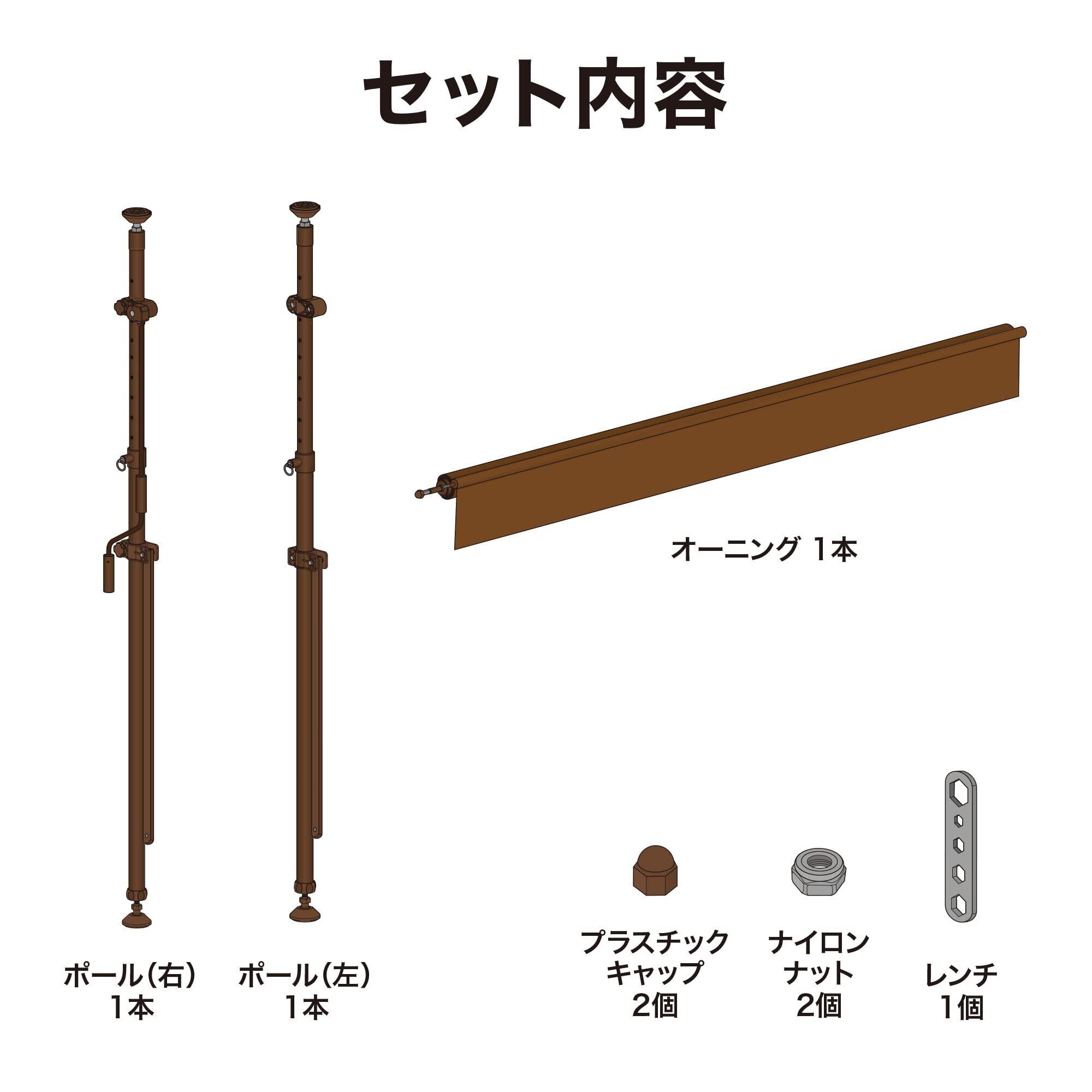 この商品は、軒のある場所につっぱって設置する日よけです。※ 地面と天井が平行で平らな場所、また十分な強度がある場所でご使用ください。※2階以上には設置しないで下さい。