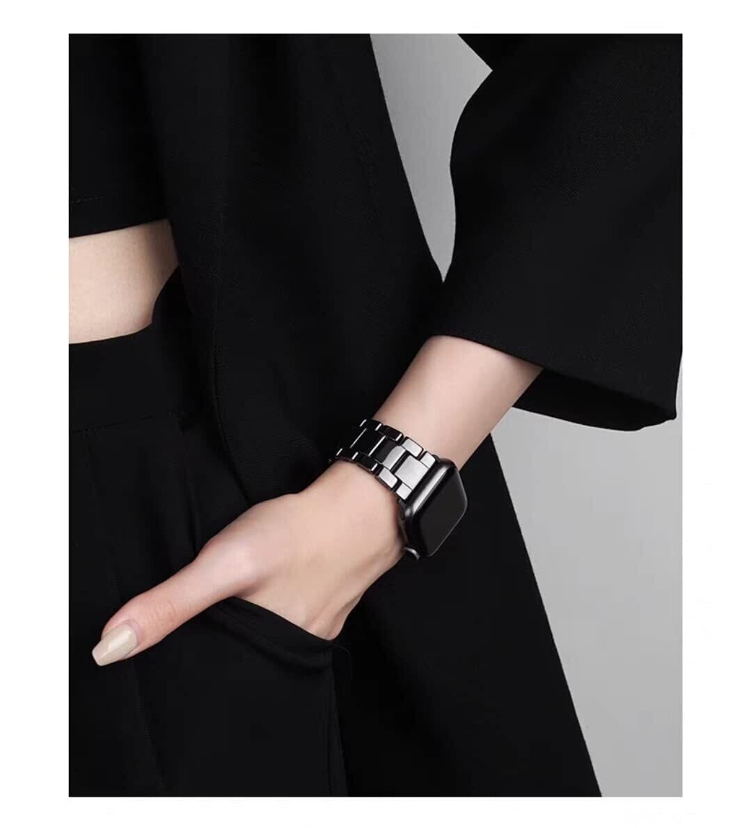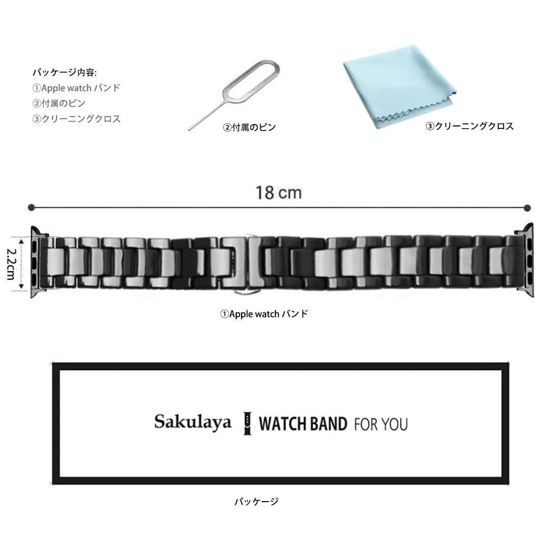 [Sakulaya] Apple Watch バンド セラミック製 アップルウォッチ バンド 長さ調整簡単 Apple Watch Series 9 8 7 6 SE Series 5 45mm/44mm/42mm 対応 バンド(ブラック (45mm/44mm/42mm)