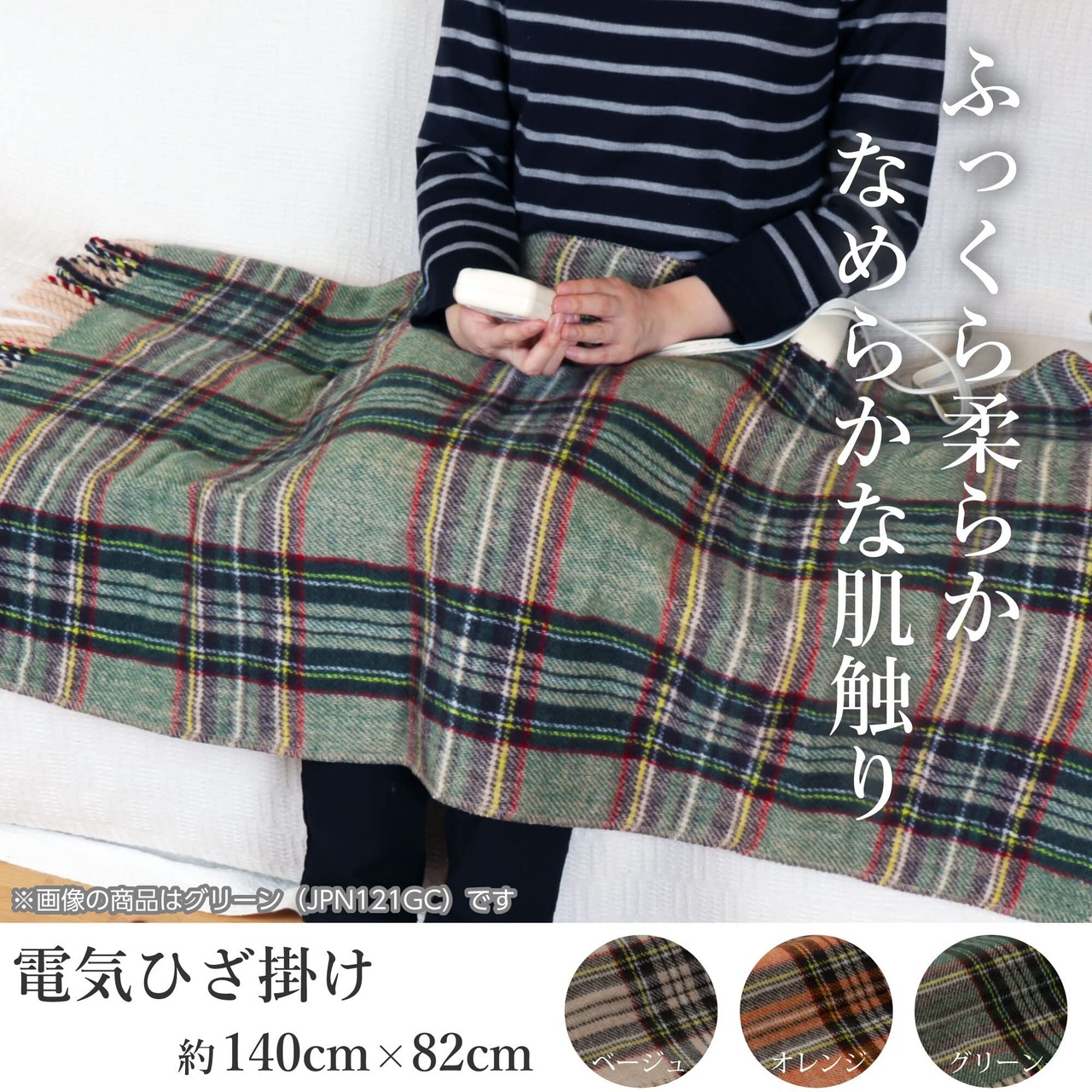 ライフジョイ 電気ひざ掛け 日本製 グリーン チェック柄 140cm×82cm 電気毛布 洗える ブランケット ふわふわ あったか JPN141GC