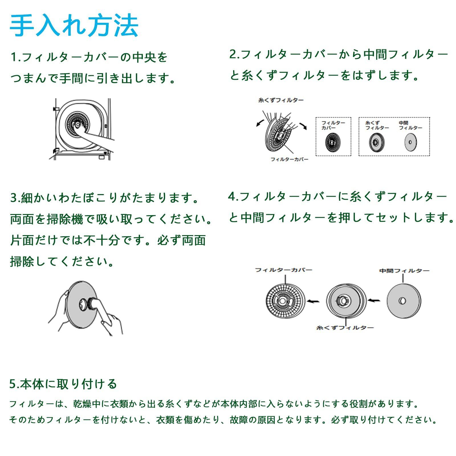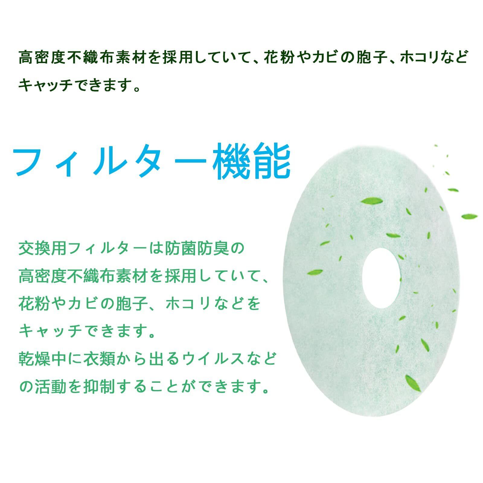【機能】交換用フィルターは防菌防臭の高密度不織布素材を採用していて、花粉やカビの胞子、ホコリなどをキャッチできます。乾燥中に衣類から出るウイルスなどの活動を抑制することができます。