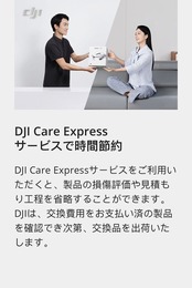 【DJI Care Expressで時間節約】:DJI Care Express特典をご利用いただくと、製品の損傷評価や見積もり工程を省略することができます。交換費用をお支払い済の製品を確認でき次第、交換品を出荷いたします。