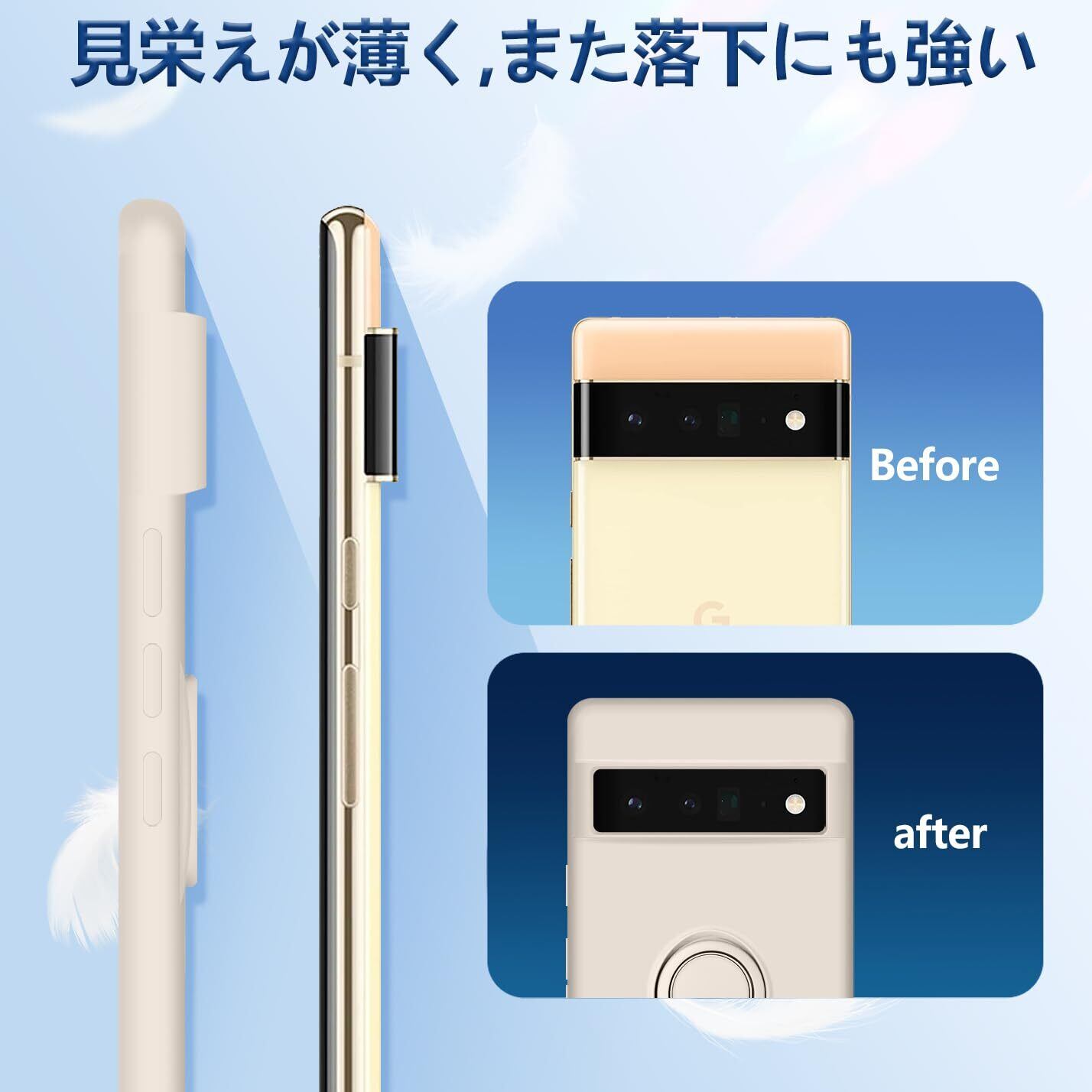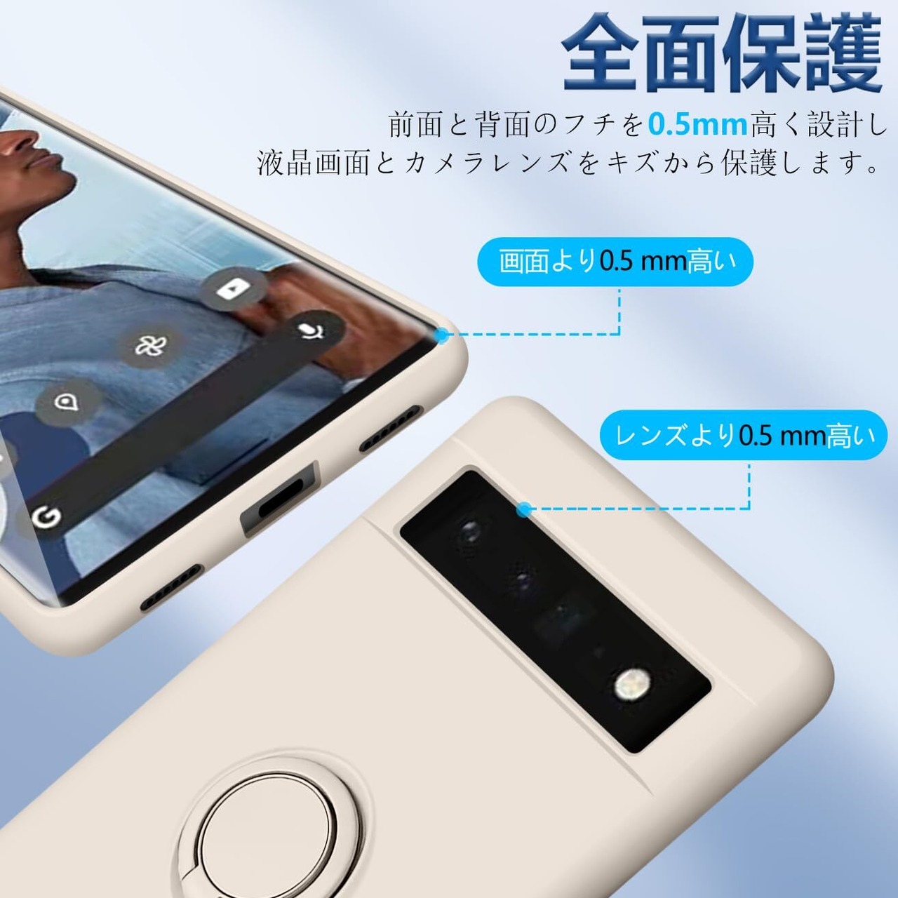 Google Pixel 6Pro ケース 耐衝撃 スタンド機能付き リング付 ピクセル6Pro リング スマホケース マット感 液体シリコン ソフト 360回転車載ホルダー (ホワイト)