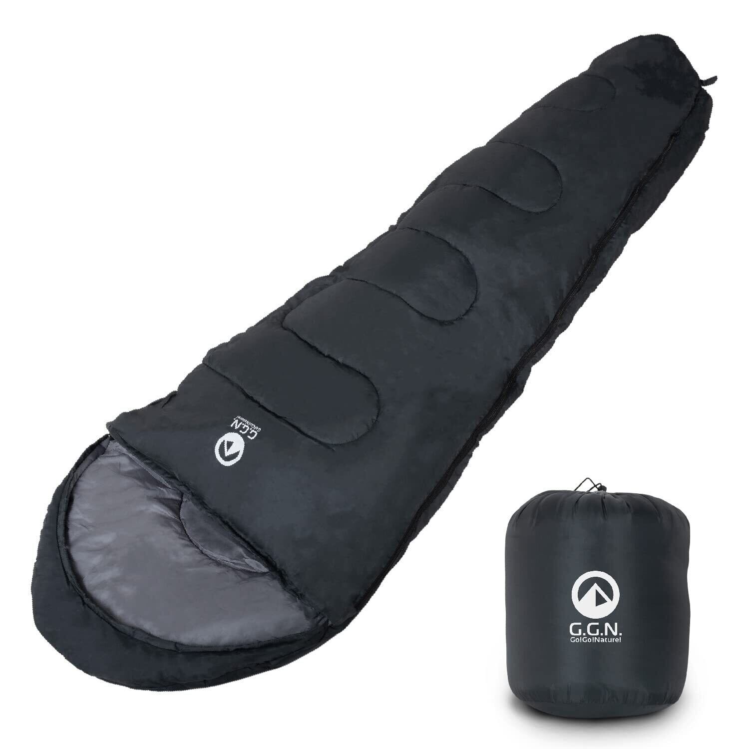 ジージーエヌ(G.G.N.) シュラフ マミー型 マミーシュラフ 冬用 グレー ブラック 寝袋 キャンプ アウトドア 車中泊 防災 災害 収納袋 付 宿泊 布団 敷物