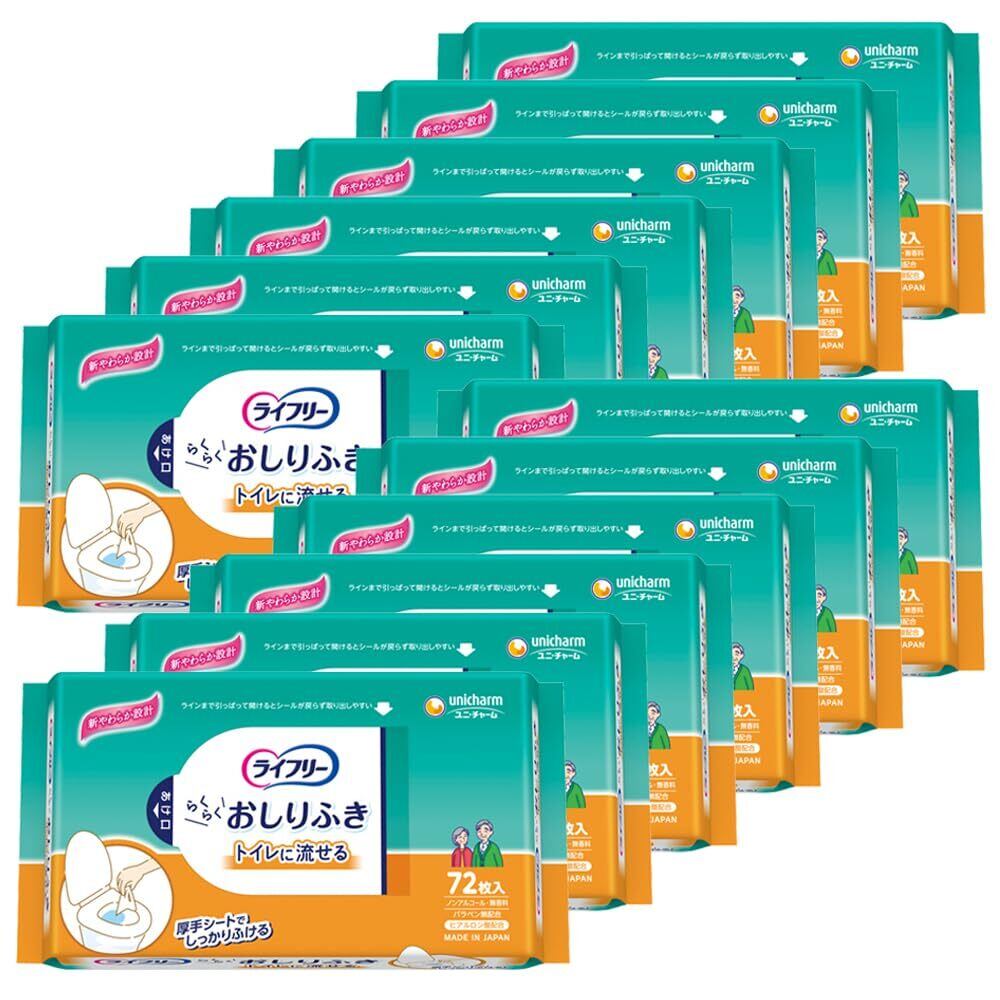 ライフリー 大人用おしりふき トイレに流せる 864枚(72枚×12) [ケース品]