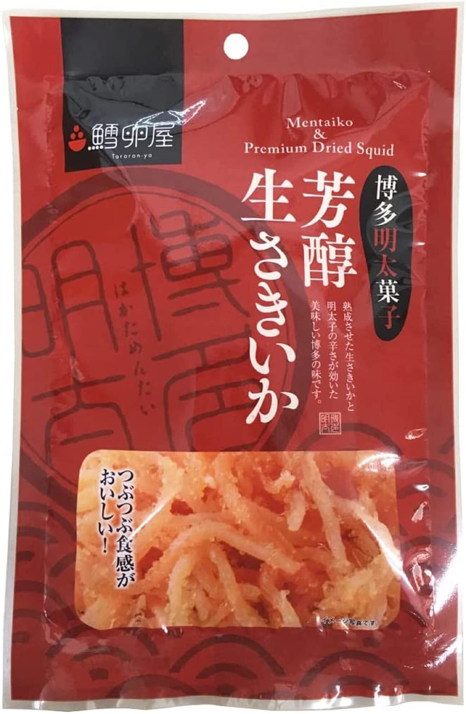 さきいか(いか(ペルー産)、砂糖、乳糖、食塩、醸造酢)、からふとししゃも卵、食塩、魚介エキス、唐辛子、乳糖、いりこだし、辛子明太子シーズニング/ソルビトール、調味料(アミノ酸等)、グリセリン、酸味料、リン酸塩(Na)、香辛料抽出物、保存料(ソルビン酸K)、着色料(赤102)、(一部に乳成分・いか・さばを含む)