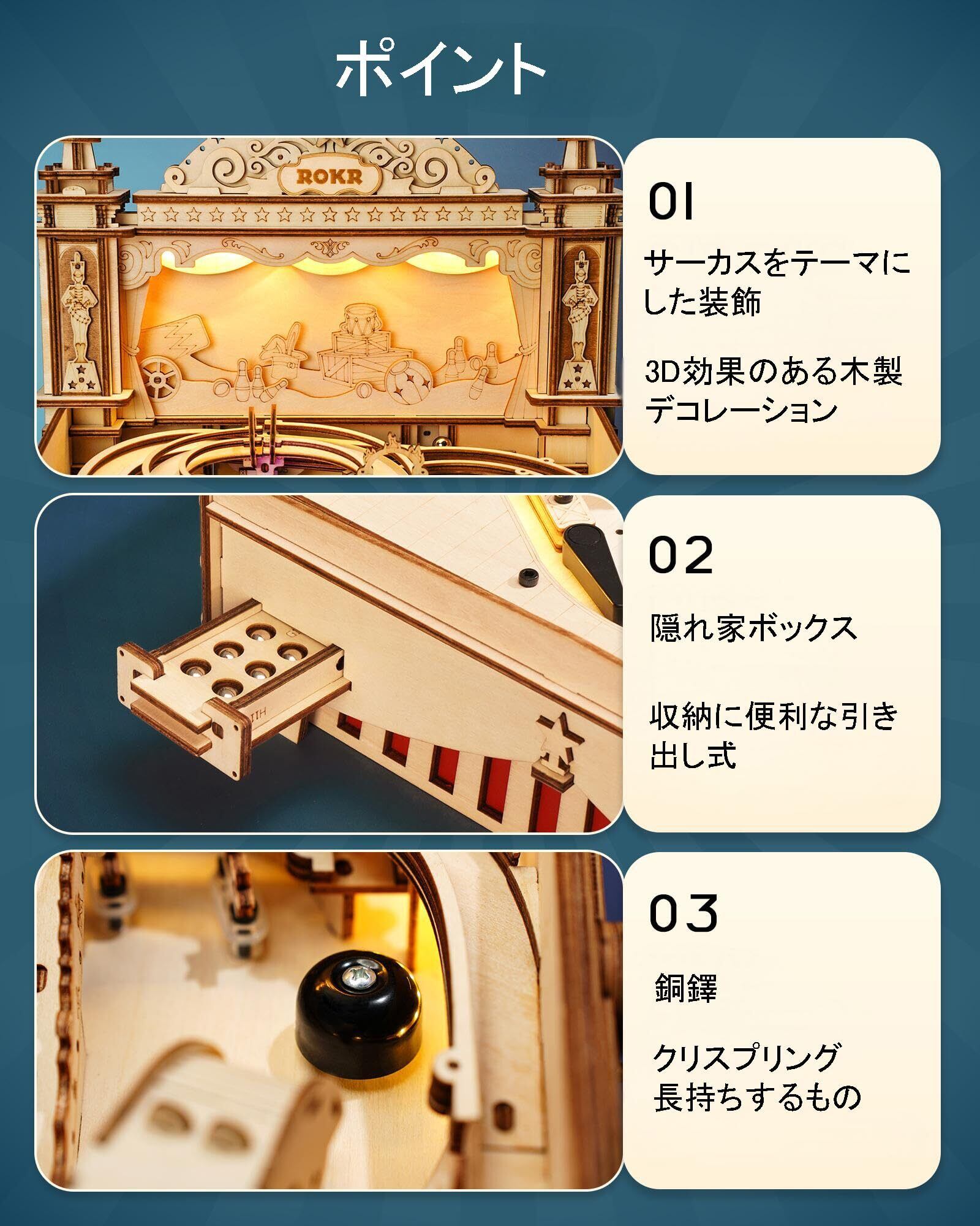 驚きの仕掛け: ROKR 3Dピンボールマシンには、ボールを打ち出す仕掛けや動くギミックがあり、遊びながら驚きを楽しめます。また、組み立てプロセスにおいても、細かい部品や仕掛けにより、完成時の喜びや驚きを味わえます。