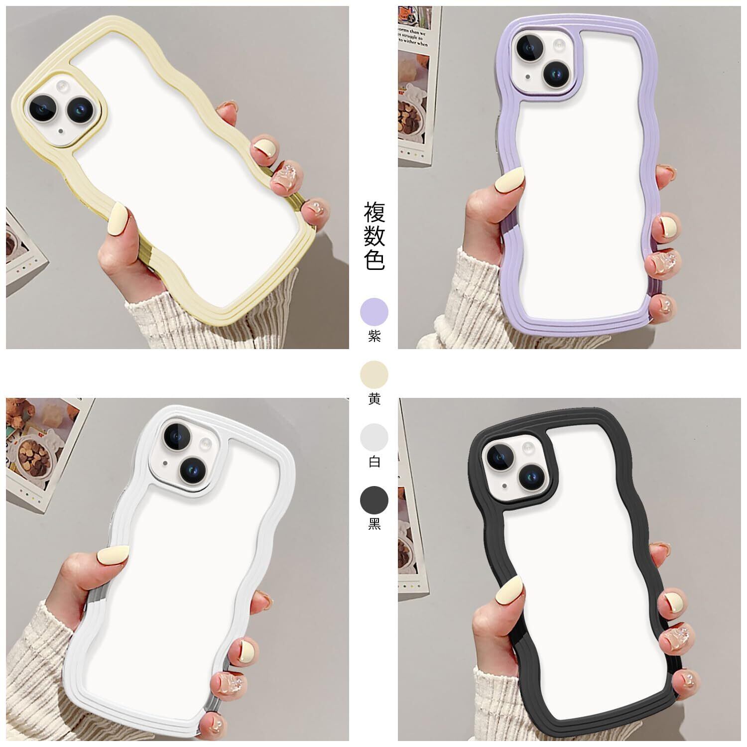【特別なグリップ感】波型ウェーブのうねうねデザインが手にフィットして持ちやすいです。それに、サイド周りのウェーブ部分はプラスチック素材で着脱簡単です。(iPhone15カバー/iPhone14ケース・全4色からお選びください)