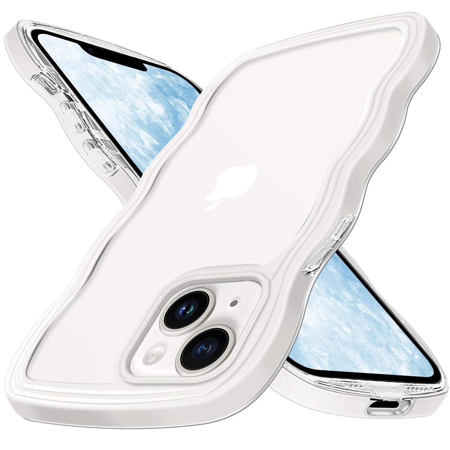 iPhone 15 ケース クリア iPhone 14 ケース 透明 iPhone15 スマホケース ワイヤレス充電 アイフォン15 カバー アイフォン14 可愛い ウェーブ デザイン 耐衝撃 滑り止め 軽量 白 ソフト 持ちやすい ホワイト
