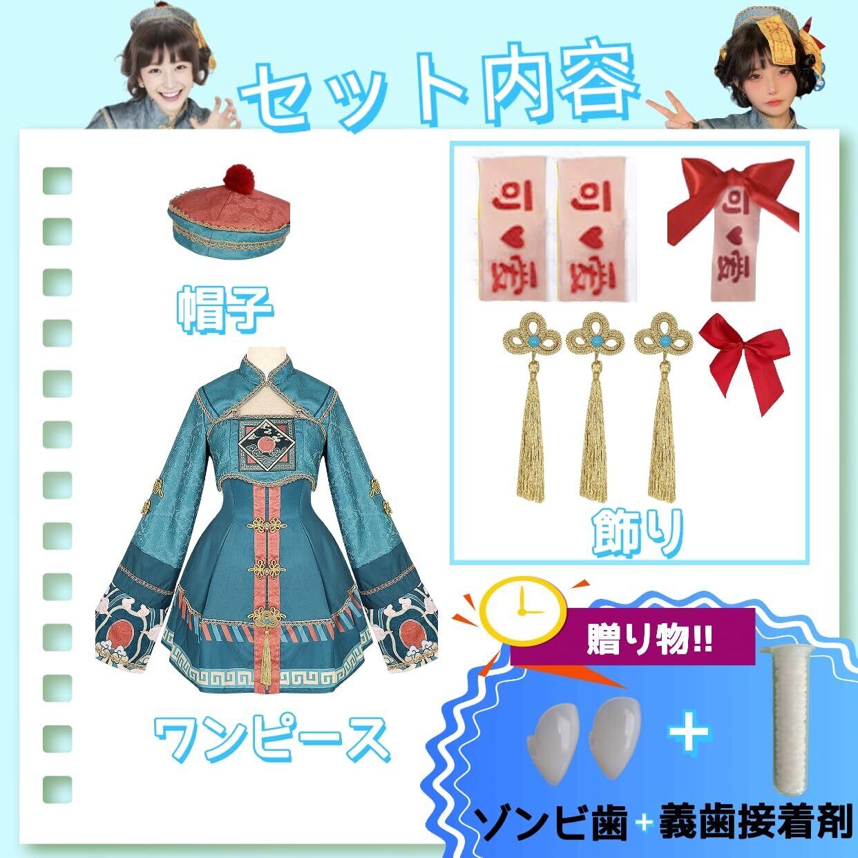 [REKUCCI] キョンシー コスプレ ハロウィン 中国 ゾンビ チャイナ服 コスチューム 大人 レディース 可愛い 仮装 イベント (L)