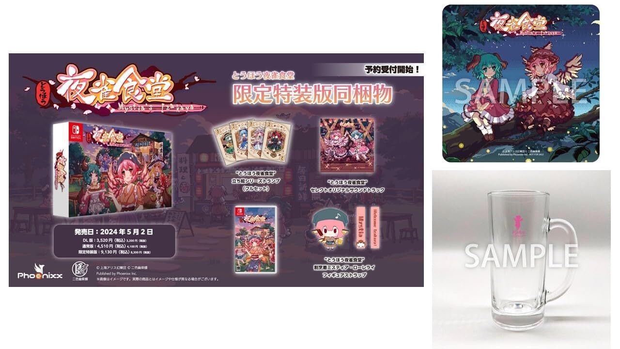 とうほう夜雀食堂 限定特装版 -Switch ビールジョッキ、クリアコースター 同梱 & 【特典】立ち絵シリーズトランプ(フルセット)、セレクトオリジナルサウンドトラックCD、割烹着ミスティア、ローレライフィギュアストラップ 同梱