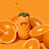 【オレンジのデザイン】オレンジ ディスペンサー エチケット袋 セットのディスペンサーには3D立体の葉が可愛く目立ち、エチケット袋には魅力的なオレンジの花柄がデザインされています