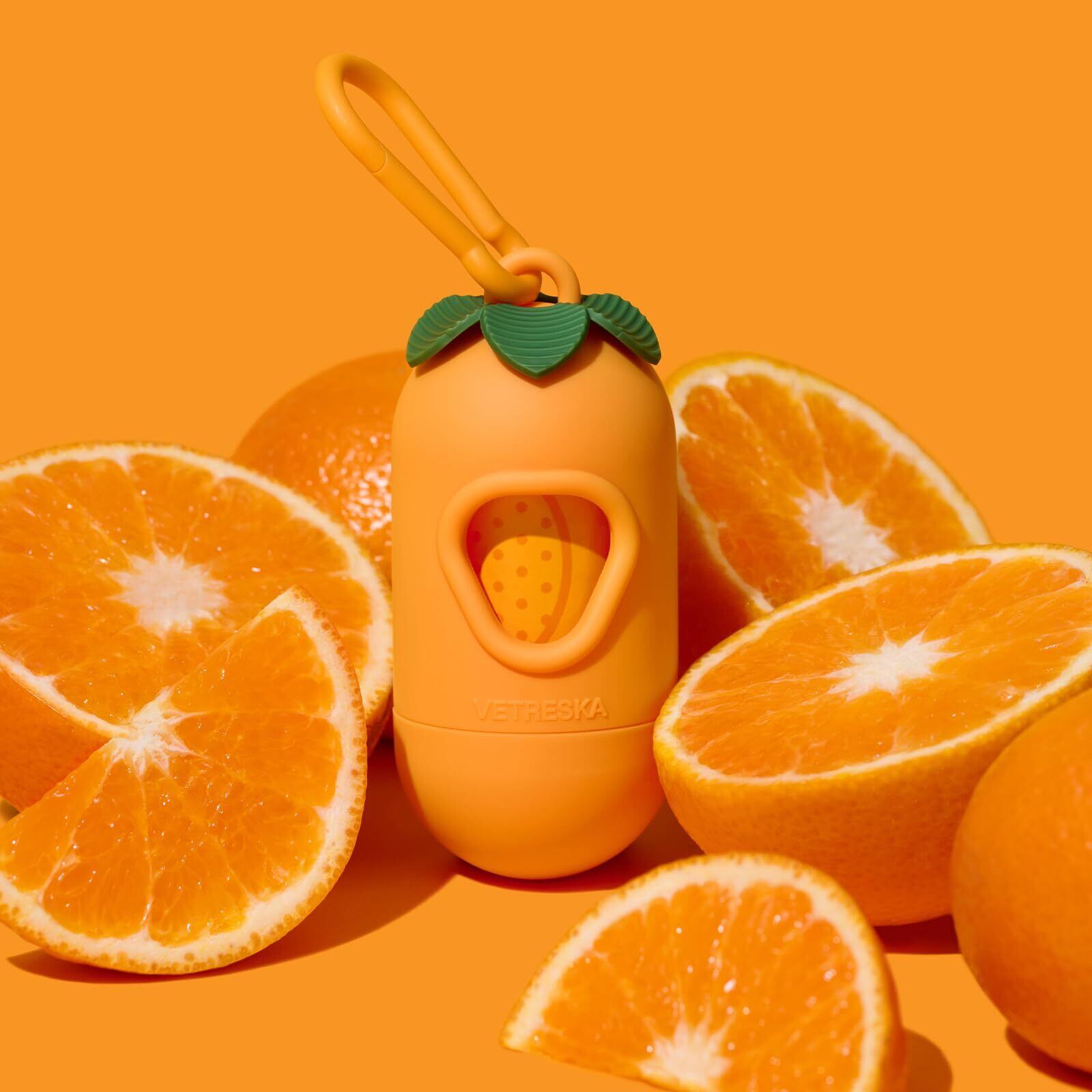 VETRESKA ベトレスカ ペット用 エチケット袋 105枚入 うんちが臭わない袋 防臭袋 うんち処理袋 におわない袋 生分解性 オレンジの香りつき 取り出し容器と首、リードク付き 猫砂用 消臭袋