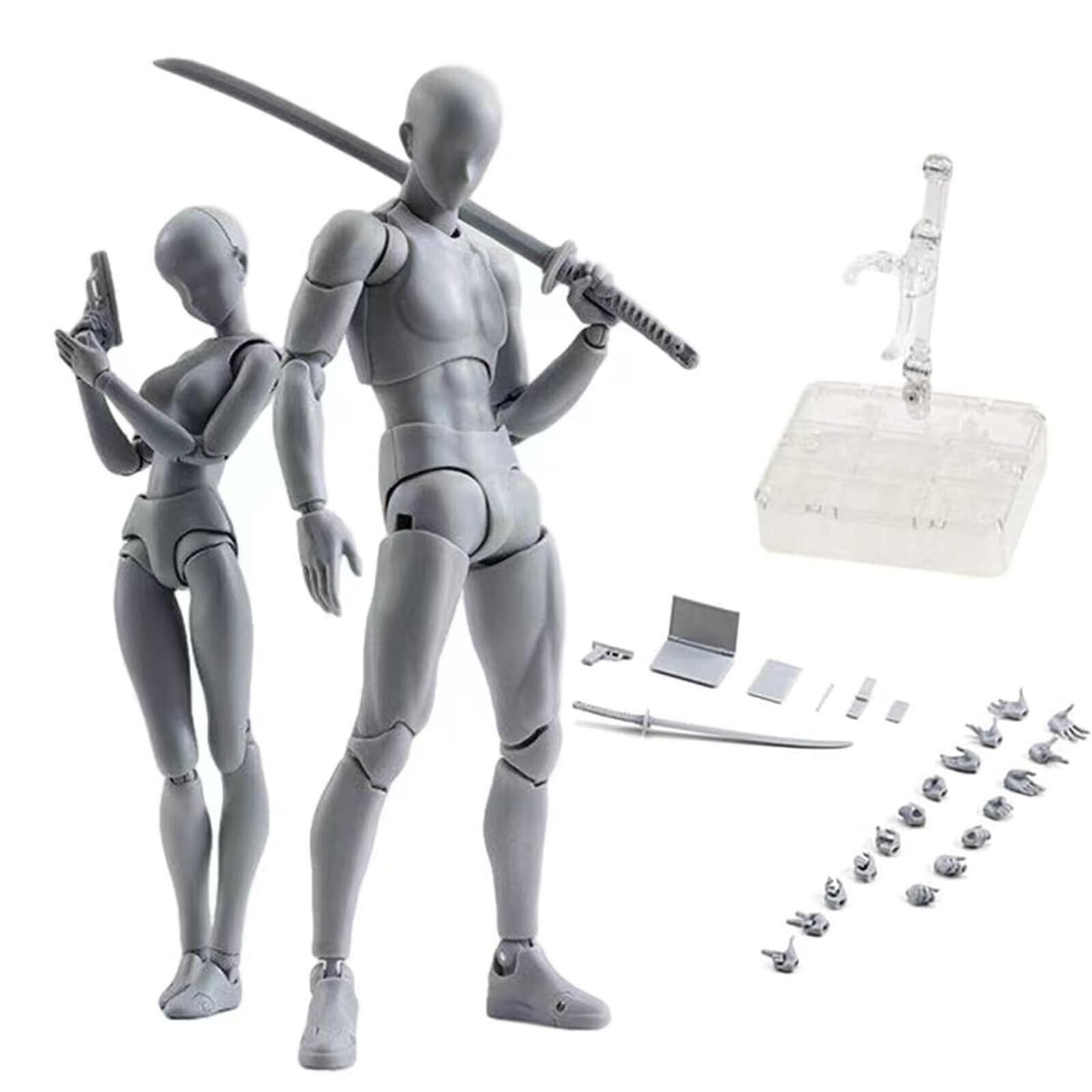 Huijokf デッサンモデル デッサン人形素体漫画 モデル人形 女性お絵かきマネキンフィギュアモデル モデルデッサン モデル人形1/12 小道具 スタンド付き ドールタイプ 素体 (女男-グレー)