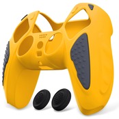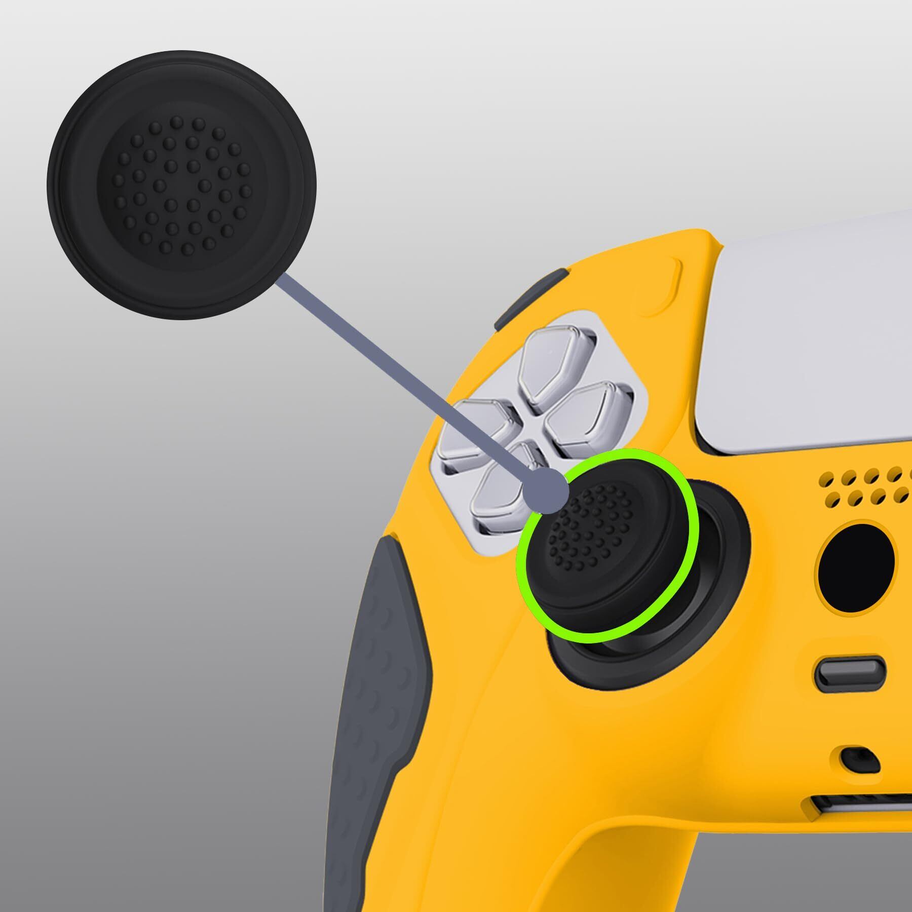 PlayVital ps5コントローラーに対応用シリコンカバー、滑り止めコントローラーシリコンスキンケース、ps5対応用人間工学に基づいたソフトラバー保護ケース親指スティックキャップ付き【ナイトエディション】-【黄色や灰色】
