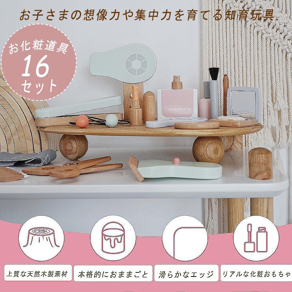 Wesfen 木のおもちゃ 知育玩具 ままごと メイクセット おもちゃ 女の子 6 7 8 9歳 女の子 プレゼント コスメ 化粧品バッグ付き 収納簡単 16点セット ごっこ遊び 誕生日 クリスマス (LH-01)