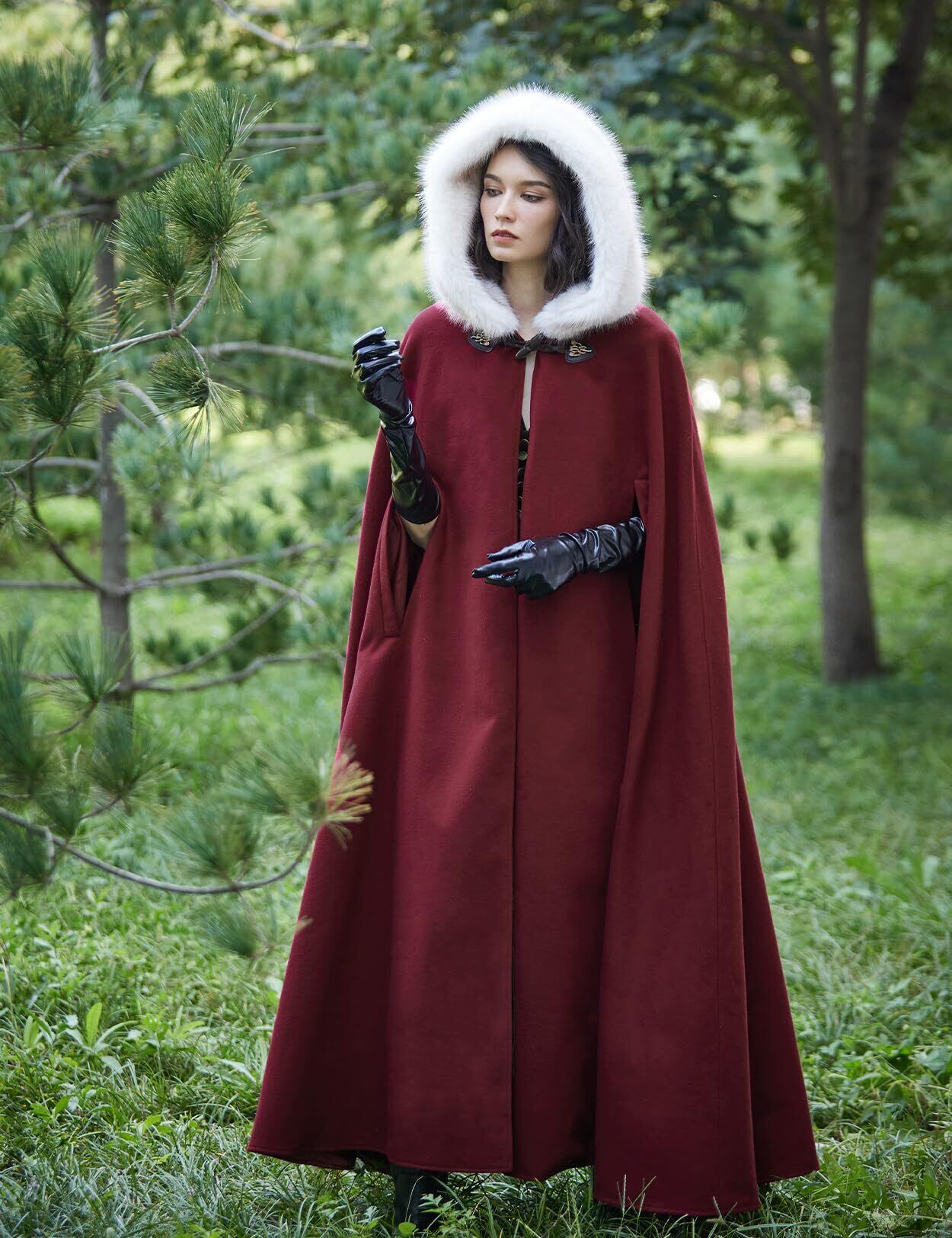 [BEAUTELICATE] マント レディース コスプレ衣装 厚手 フード付き フォックスファー レトロ 中世 秋冬コート 防寒 暖かい 写真 ステージ衣装 ハロウィン クリスマス イベント パーティー 文化祭 演出