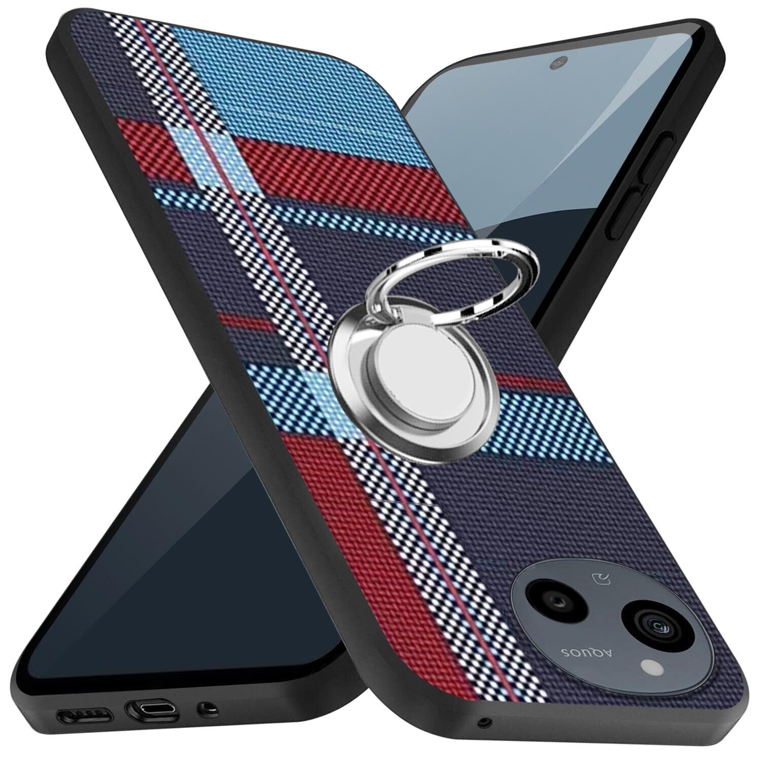 AQUOS sense9 ケース リング 耐衝撃 TPU 指紋防止 アクオスセン 9 SH-53E カバー 専用 シリコン 車載ホルダー対応 360°回転 ストラップホール付き 滑り止め 落下防止 全面保護カバー(ブルーストライプ )