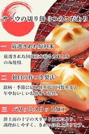 おもちにスリットが入り、ふっくらしたお餅に焼きあがります。