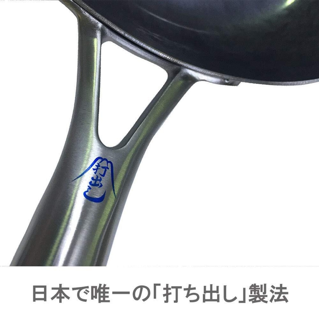 神奈川県横浜市の山田工業所とのコラボ商品“打出し"という製法は、鉄を数千回叩き締めてフライパンをつくる日本で唯一の技術。この技術により鉄が締まり丈夫に仕上がっているだけではなく、表面に凹凸ができるので油なじみがよいのが特長打出しで作られたフライパンは叩くことで鍛え伸ばされ、 薄く軽量になり、熱まわりがよく、鍋振りもラクなため特にプロの料理人に評価されている、ビタクラフトプロで好評な片手ハンドルを採用。持ちやすく使い勝手が抜群