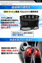着用サイズ S:ウエスト約60~76cm M:ウエスト約70~86cm L:ウエスト約80~96cm XL:ウエスト約90~103cm XXL:ウエスト約94~115cm / 幅約21cm / メンズ/レディース兼用/男女兼用・装着手順のイラスト入り説明書付きです。
