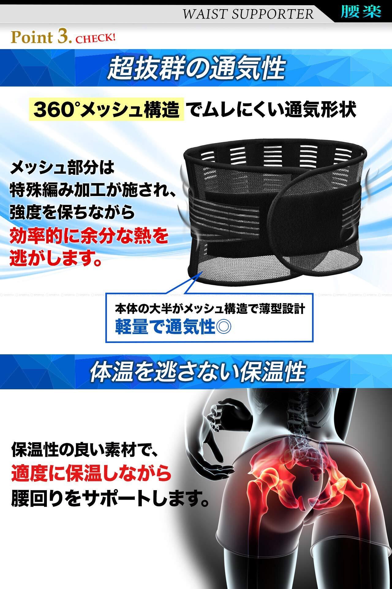 SPORTIA 腰用 サポートベルト 腰サポーター 腰楽コルセット 薄型 通気性 男女兼用 L
