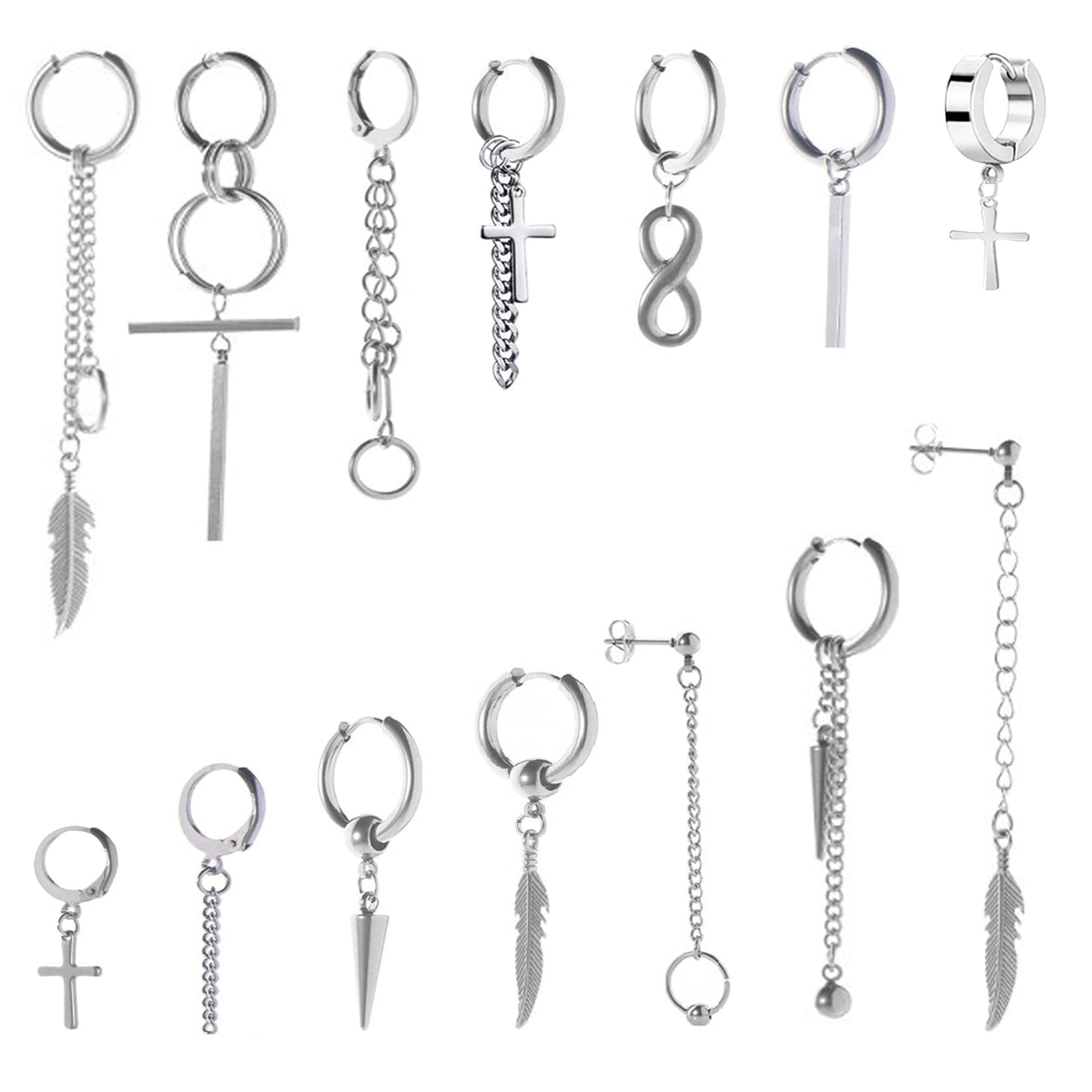 14種 チェーン ピアスメンズ レディース 片耳 フープリング18G 人気 揺れるピアス bts イヤリング片耳ピアス フープピアス メンズピアス ピアスチェーンシルバー 韓国 ファッション earring 揺れるイヤリング 金属アレルギー対応 収納ポーチ付き ユニセックス