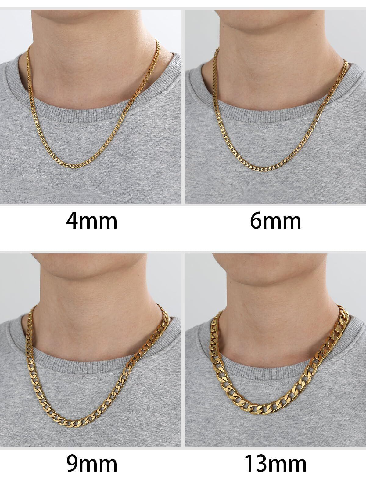 【色も!太さも!長さも選べる!】ネックレスチェーン幅4mm、6mm、9mm、13mm、チェーンの長さ45cm、50cm、55cm、60cm、65cm、70cm、75cm、定番で人気のシルバー、ゴールド、ブラックの3色、全84種類を揃えました!