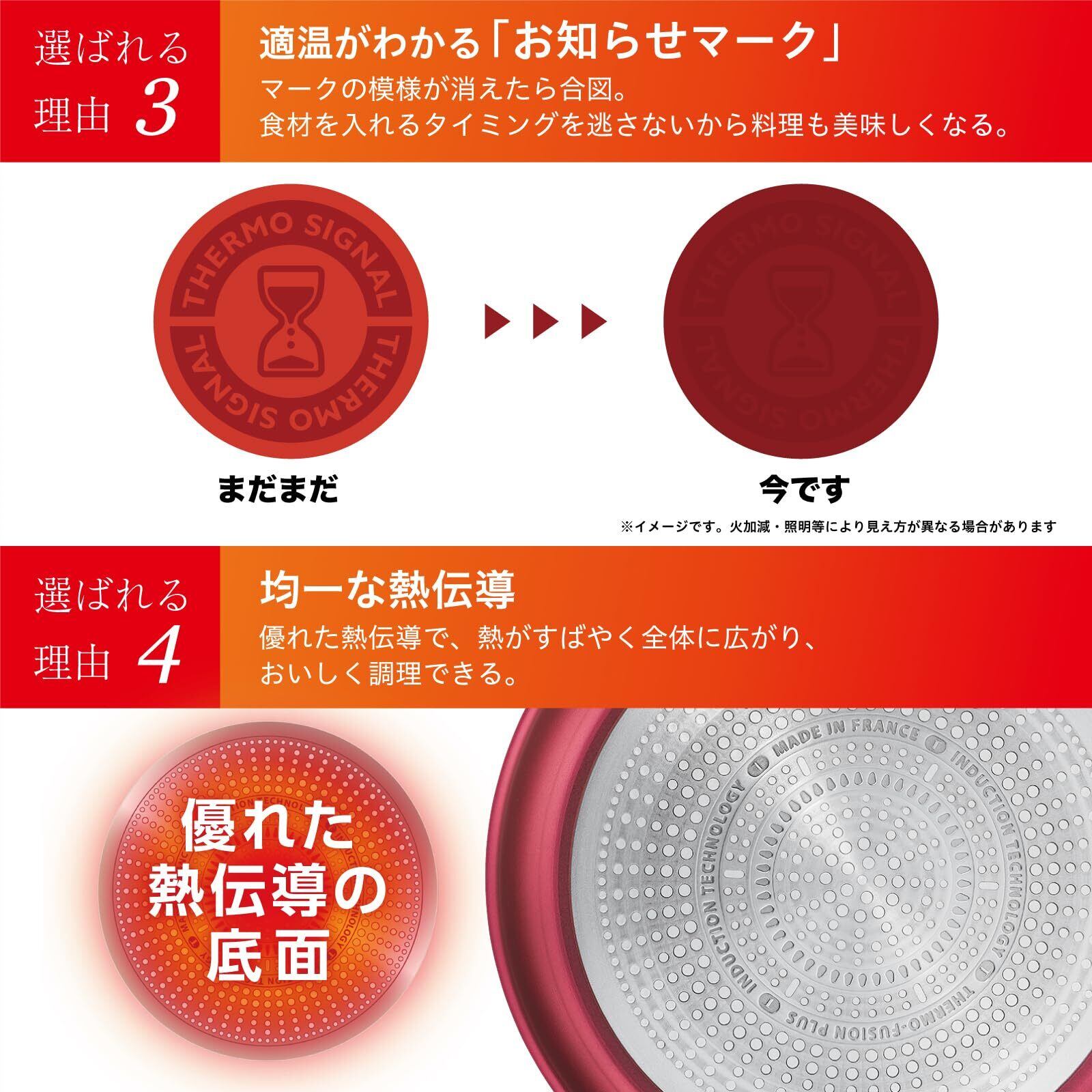素材・材質:本体/ステンレス鋼 (クロム18%-ニッケル8%)、底/ステンレス鋼 (クロム18%-ニッケル8%)+アルミニウム+ステンレス鋼 (クロム16%)、取っ手/フェノール樹脂+ステンレス鋼 (クロム16%)、加工/チタン・インテンス (内面)、生産国:中国