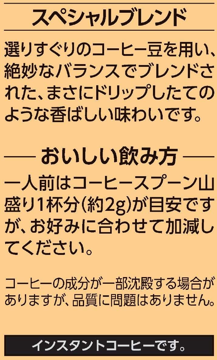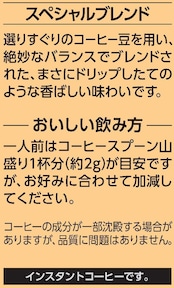 【商品特徴】選りすぐりのコーヒー豆を使用。ブラックでも、お湯を注いだ後に氷を加えてアイスコーヒーとして、お湯を注いだ後に牛乳を加えてカフェオレとしても、お楽しみいただけます。