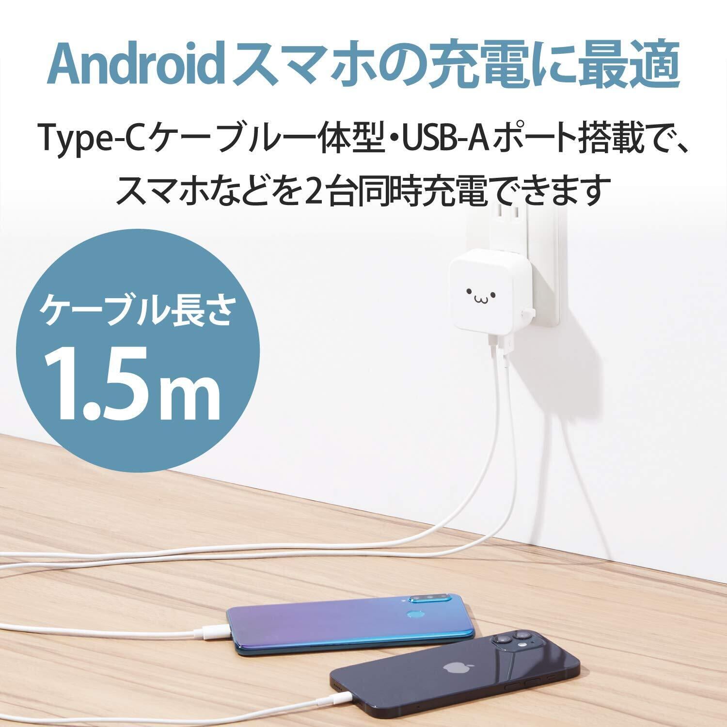 エレコム(ELECOM) 充電器 合計12W Aポート×1 Type-Cケーブル 1.5m 【 Android / タブレット 対応 】 ホワイトフェイス MPA-ACC22WF