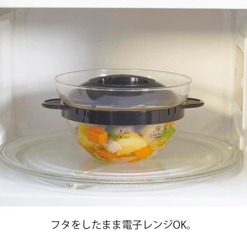 HARIO(ハリオ) ガラスのレンジおかず鍋 電子レンジ用 レンジで簡単調理 ブラック 実用容量450ml 日本製 クリームスープ 手作り XOY-1-B
