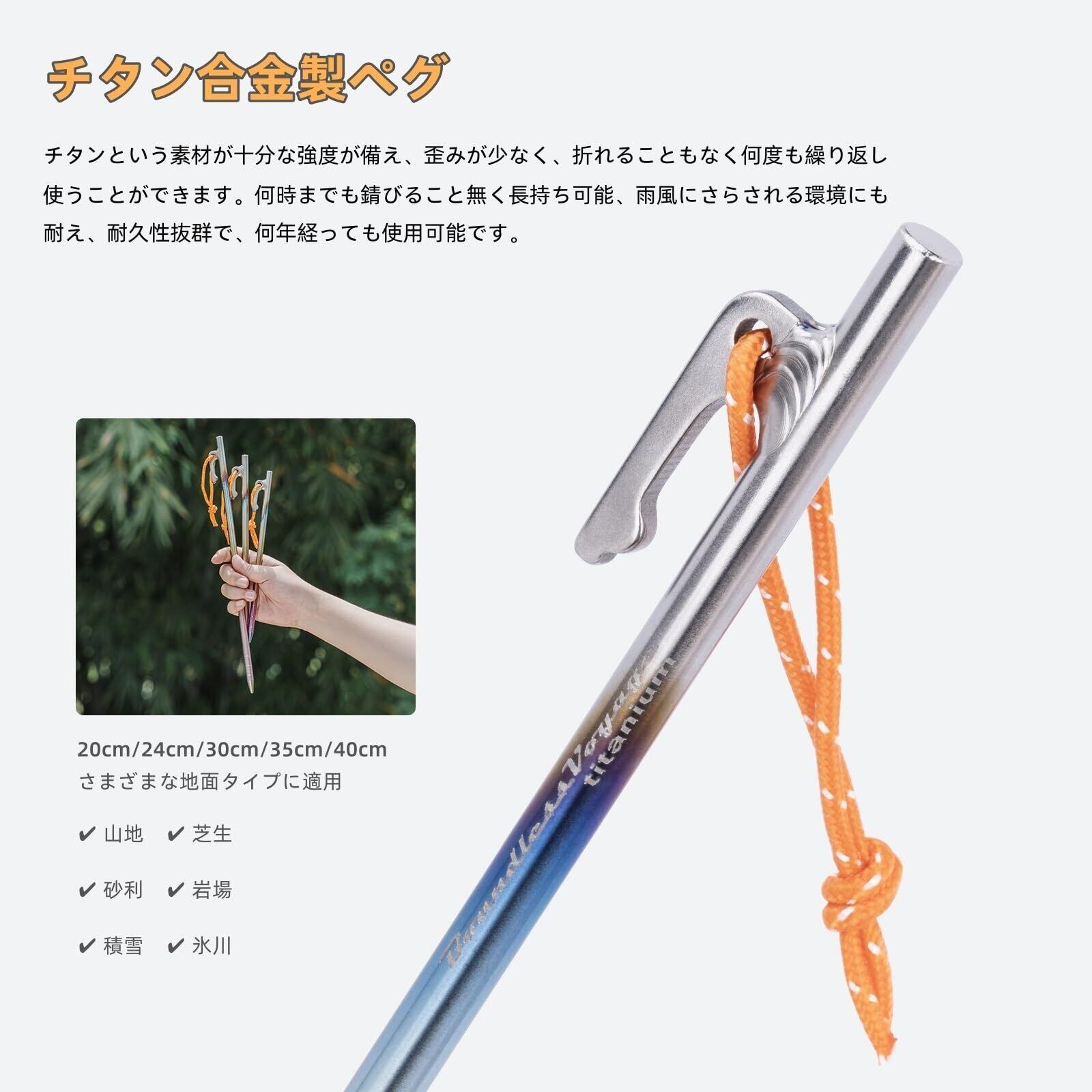 Boundless Voyage チタンペグ ソリッド 焼き色 強靭 20CM 24CM 30CM 35CM 40CM チタン合金 岩場 砂浜 砂利 硬い土 草地 テントペグ タープペグ アウトドア キャンプ 鍛造ペグ 設営用具