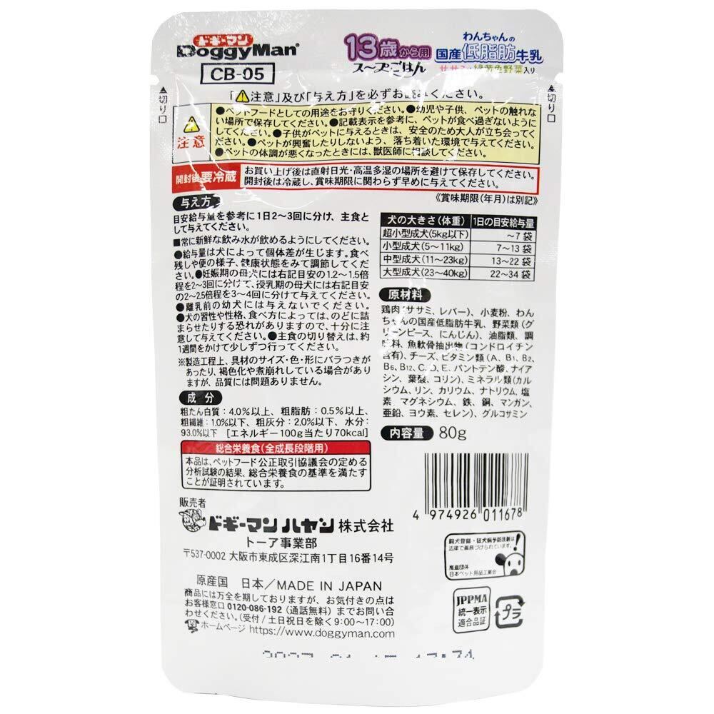 ドギーマン ドッグフード 13歳から用 わんちゃんの国産低脂肪牛乳スープごはん ササミと緑黄色野菜入り 80グラム (x 10) (ケース販売)