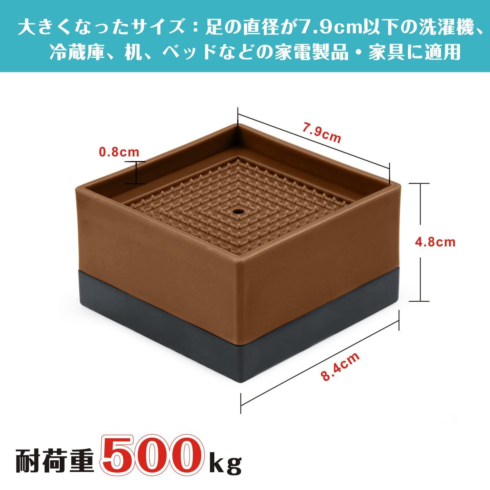Umelee 洗濯機かさ上げ台 4cmかさあげ 机 テーブル 脚 継ぎ足し 洗濯機置台 防振ゴム 乾燥機 ソファー ベッド用 高さ調節 重ねて使用可能 振動・異音軽減 滑り止め 床に傷防止 4個入り ブラウン
