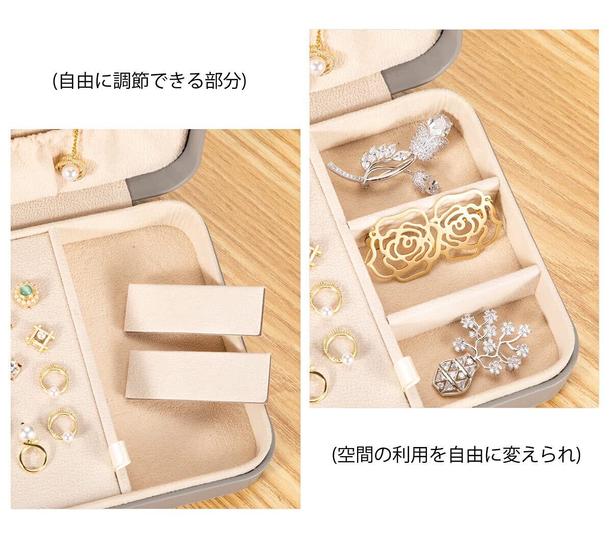 LANDICI ジュエリーボックス PUレザージュエリーケース ジュエリーボックス 指輪置きジュエリー収納ケース 携帯用 持ち運び 仕切り付き宝石箱 jewelry box organizer じゅえりーぼっくす ネックレス イヤリング ピアス ブレスレットなど小物入れアクセサリー ボックス グレー