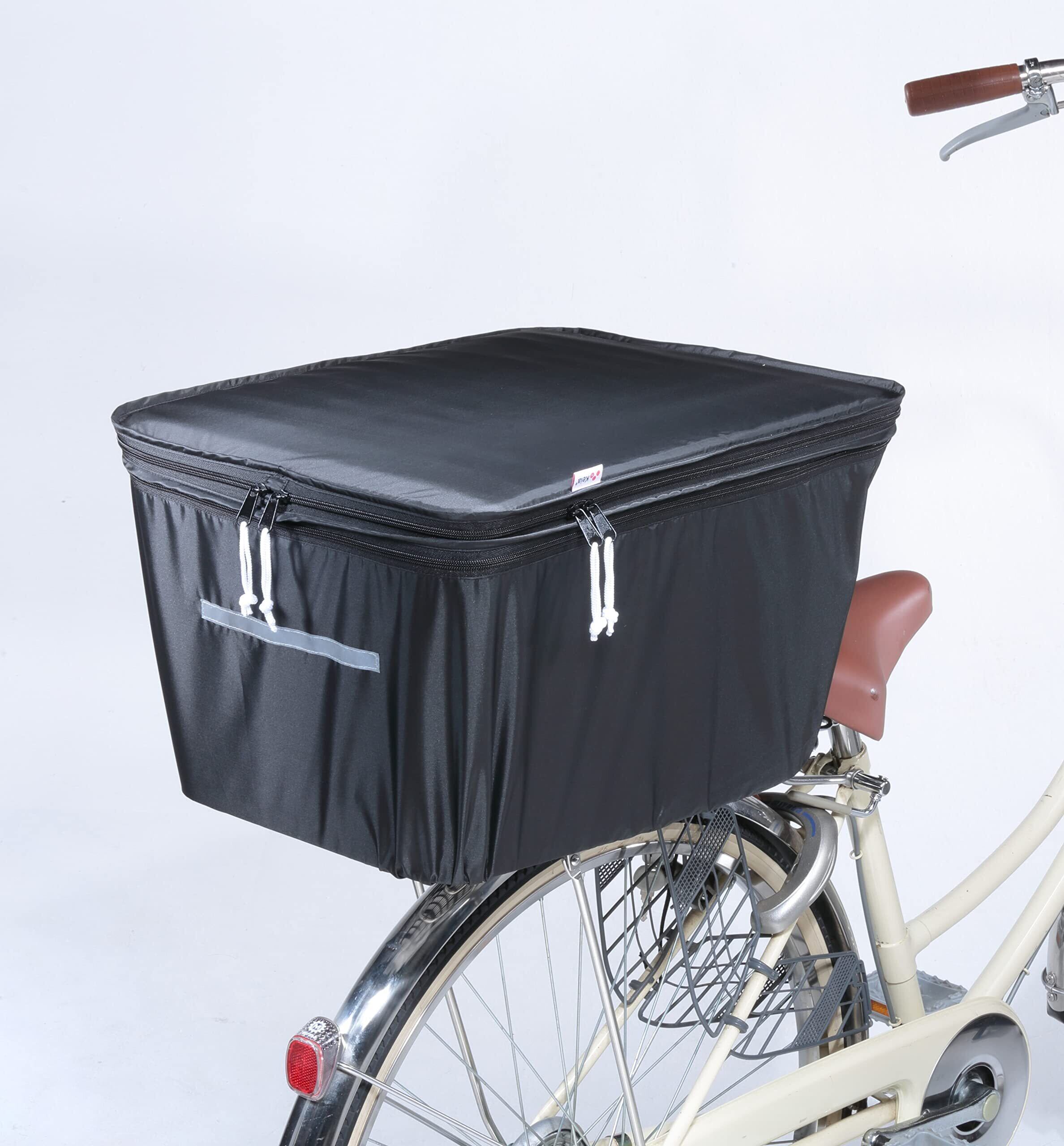 本体・ファスナーの色もオールブラックで、男性にもご利用いただけるシンプルなデザイン。 道も安心の反射帯付き。 っぷり収納できる2段式カゴカバー。 の日も安心な防水&撥水加工。 開きで開閉楽々。背面伸縮ゴム入り。 ケット付き。 ・夜道も安心の反射帯付き。 ・たっぷり収納できる2段式カゴカバー。 ・雨の日も安心な防水&撥水加工。 ・両開きで開閉楽々。 ・前ポケット付き。 ・背面伸縮ゴム入り。