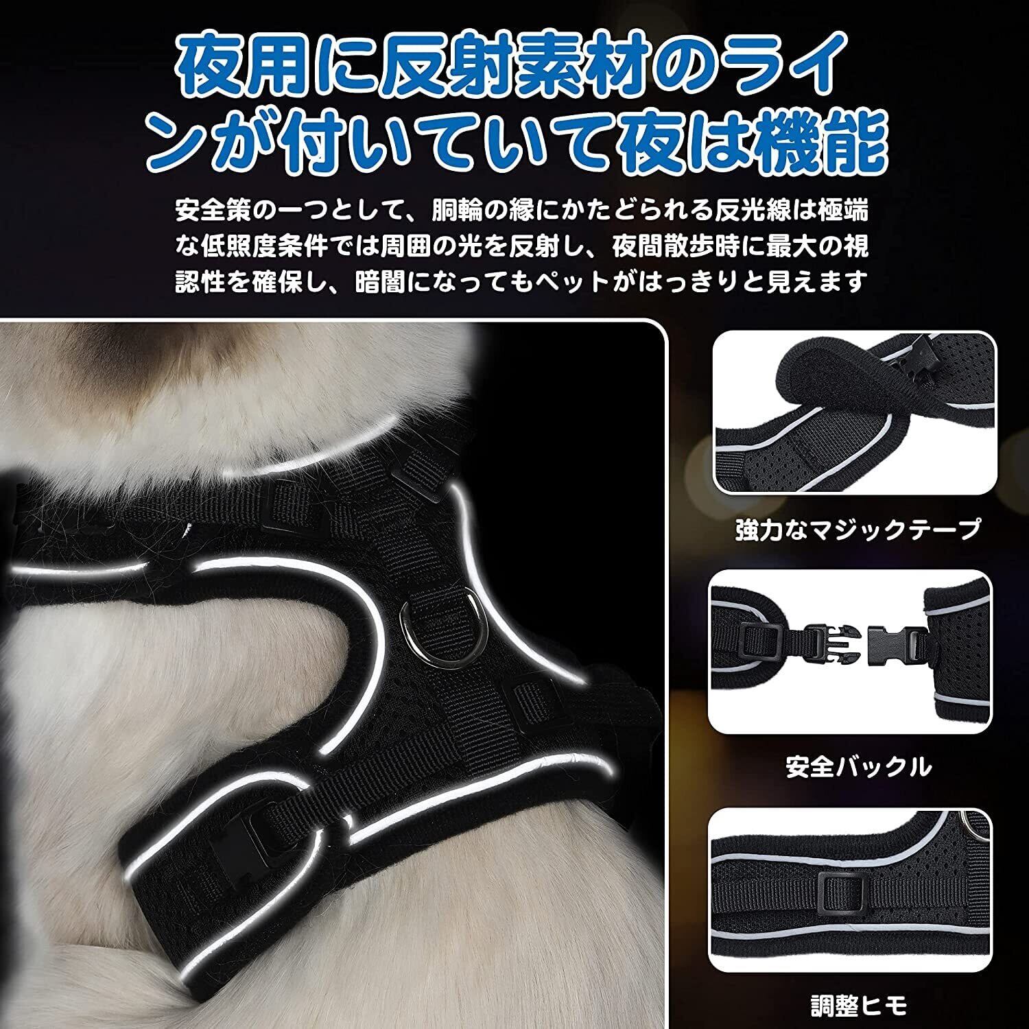 猫 猫用 ハーネス 胴輪 猫具 ねこ ネコ 子猫 子犬 小型犬 散歩 お出かけ 抜けない ベスト ソフト胸あて 軽量 頭を通さずマジックテープで装着 サイズ調節可 夜反射 通気メッシュ (XSサイズ (x 1), ブラック_03)