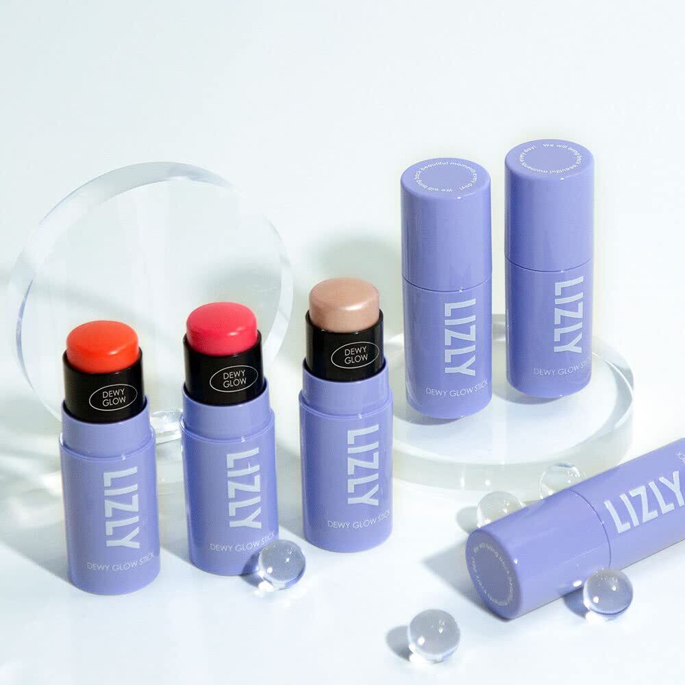 チーク ハイライター スティック マルチフェイス メイクアップ スティック マルチバーム LIZLY Dewy Glow Cheek Hilighter Multi Balm Stick 韓国コスメ スポットライティング ラメ キラキラ 立体感 頬 唇用 クリーム (01 コーラル Coral)
