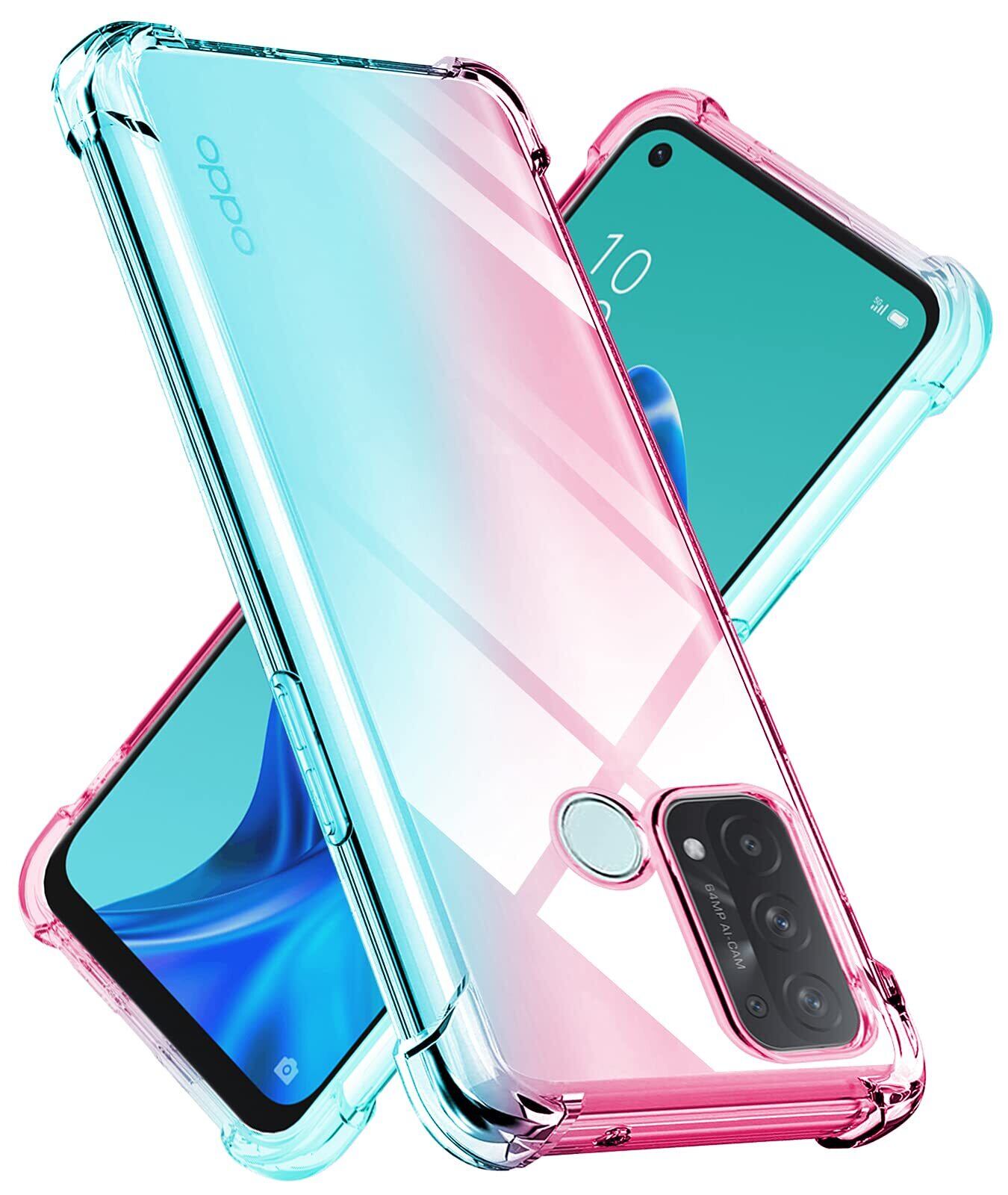 OPPO Reno5 A ケース TPU クリア 薄型 軽量シリコン グラデーション色 ケース 耐衝撃 米軍MIL規格取得 黄変防止 防塵 一体型 人気 携帯カバー (ピンクグリーン)