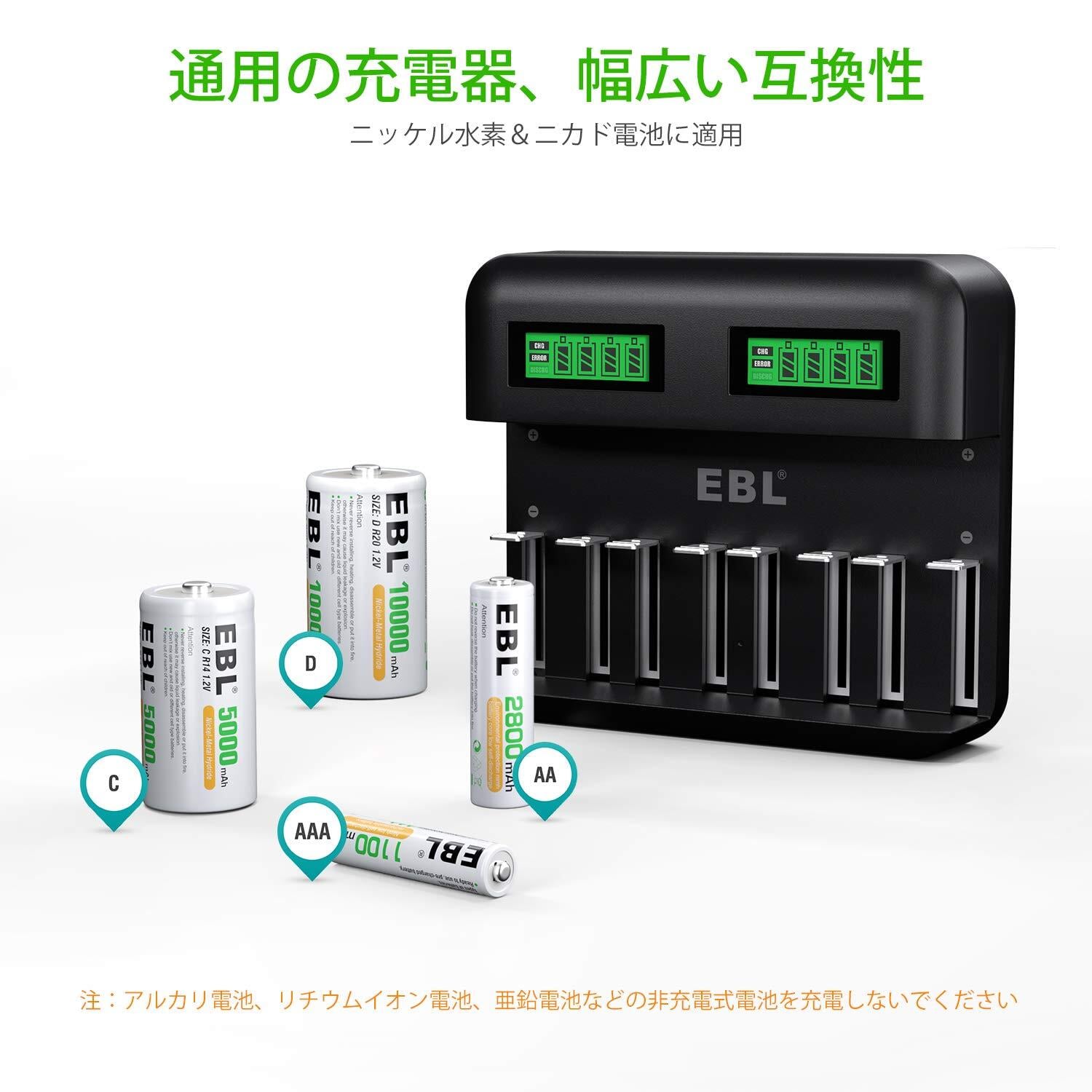 EBL 電池充電器 8つスロット独立充電 単1 単2 単3 単4充電池に対応可能 LCD充電表示 単3充電池 単4 充電池充電器 単一 単二電池充電器