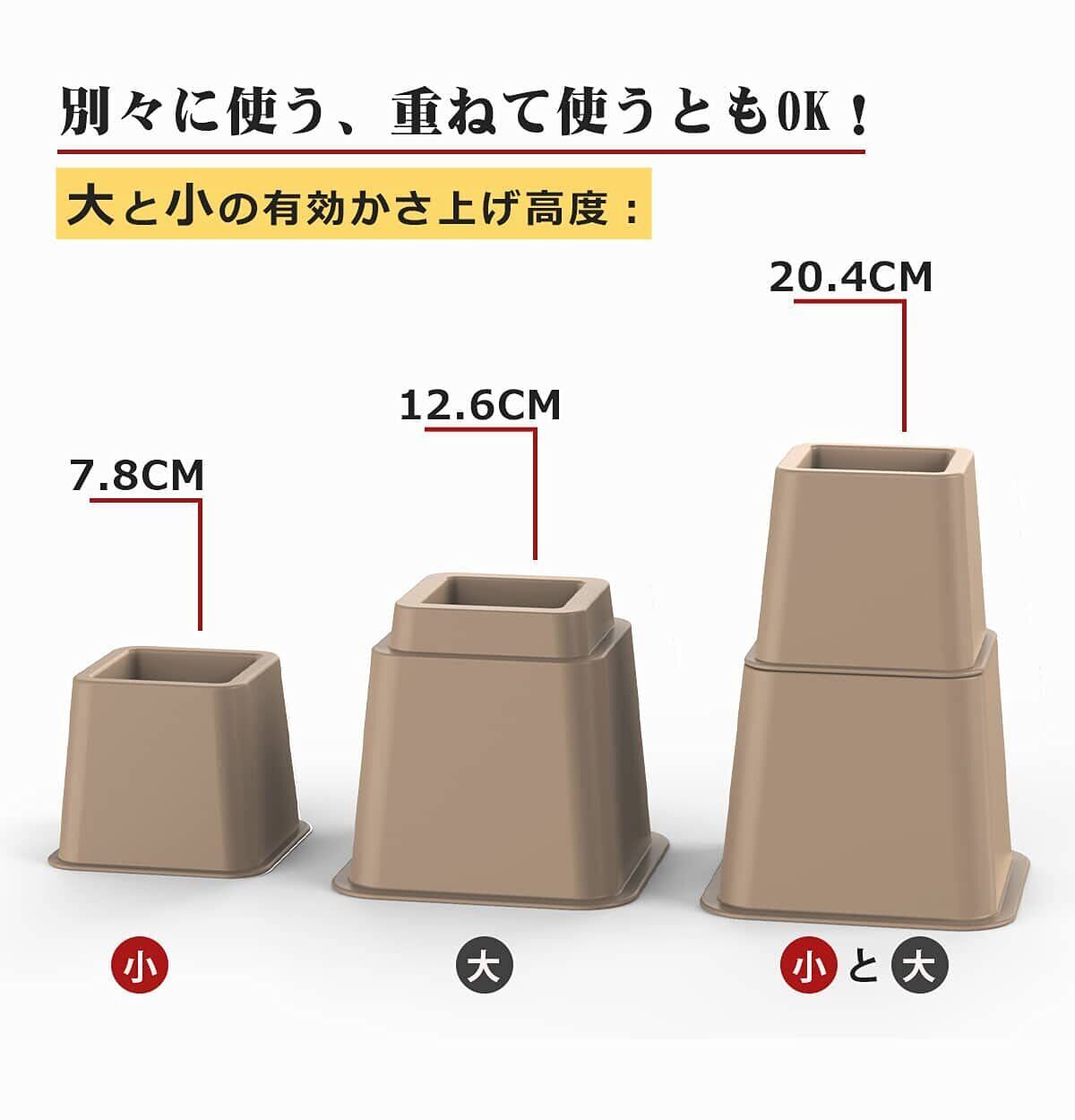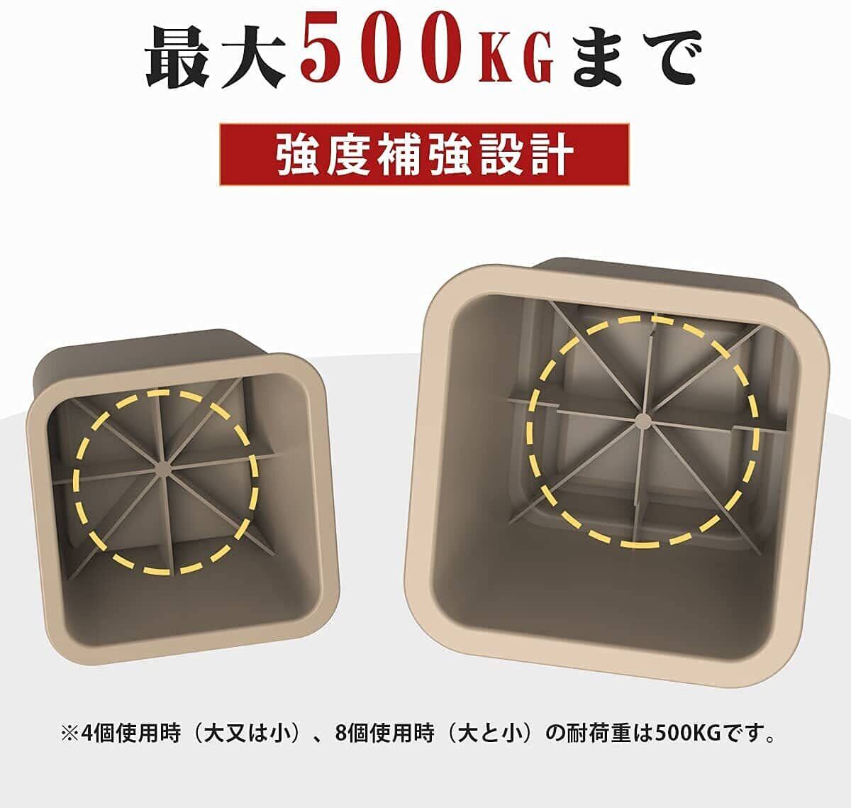 ①置くだけで設置、ソファー、テーブル、ベッドなどの家具は設置可能! ②大と小2セット合計8個。③家電や家具をかさ上げ、湿気から守り、スペースを作り、掃除も便利になります。