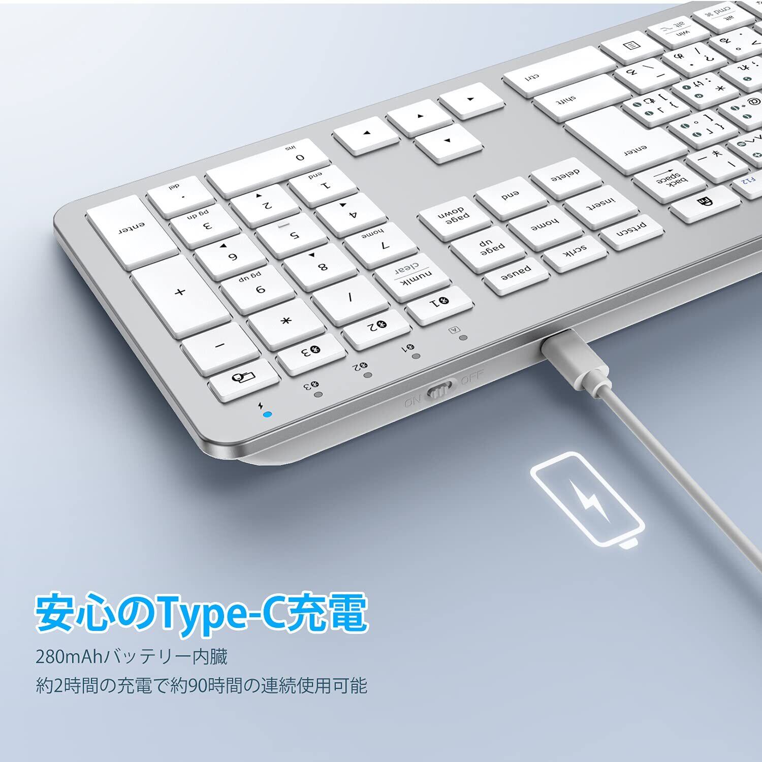 iClever Bluetooth ワイヤレス キーボード 日本語配列 フルサイズ マルチペアリング Type-C充電式 122h長時間稼働 パンタグラフ式 テンキー付き OS自動識別 日本語説明書付き Windows/iOS/Mac/Android 対応 IC-BK31 (シルバーホワイト)
