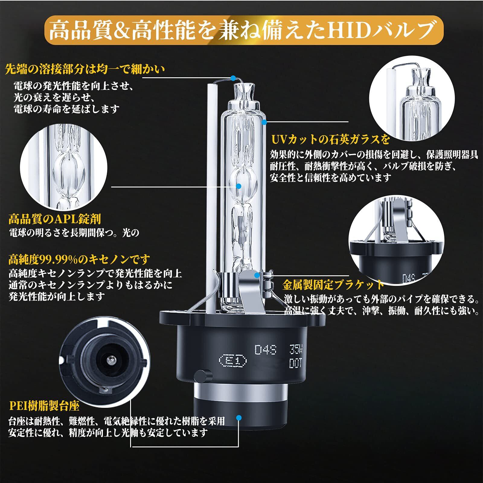 【純正交換用d4sバルブ】 D4S専用台座に100%対応設計、純正HIDバルブ装着車輌D4Sタイプからの交換に最適な車検対応HIDバルブです。D4R、D4S、およびD4Cの互換ソケットではない。互換性が高く、すぐにプラグアンドプレイ、無傷のインストール。※ご購入する前には、色温、型式、サイズを必ずご確認下さい。※