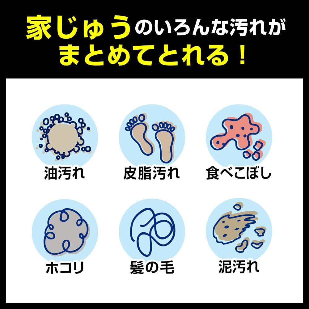 ※1でホコリ、髪の毛、油汚れや足裏汚れもすっきり拭きとります。
