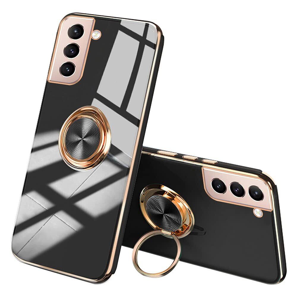 JOOBOY Galaxy s21 用 ケース ギャラクシー s21 5G 用 ケース リング付き メッキ加工 レンズ保護 tpu ソフト ストラップホール付き 耐衝撃 スリム おしゃれ スマホケース 携帯カバー ギャラクシーS21 用 カバー (Galaxy S21, ブラック)