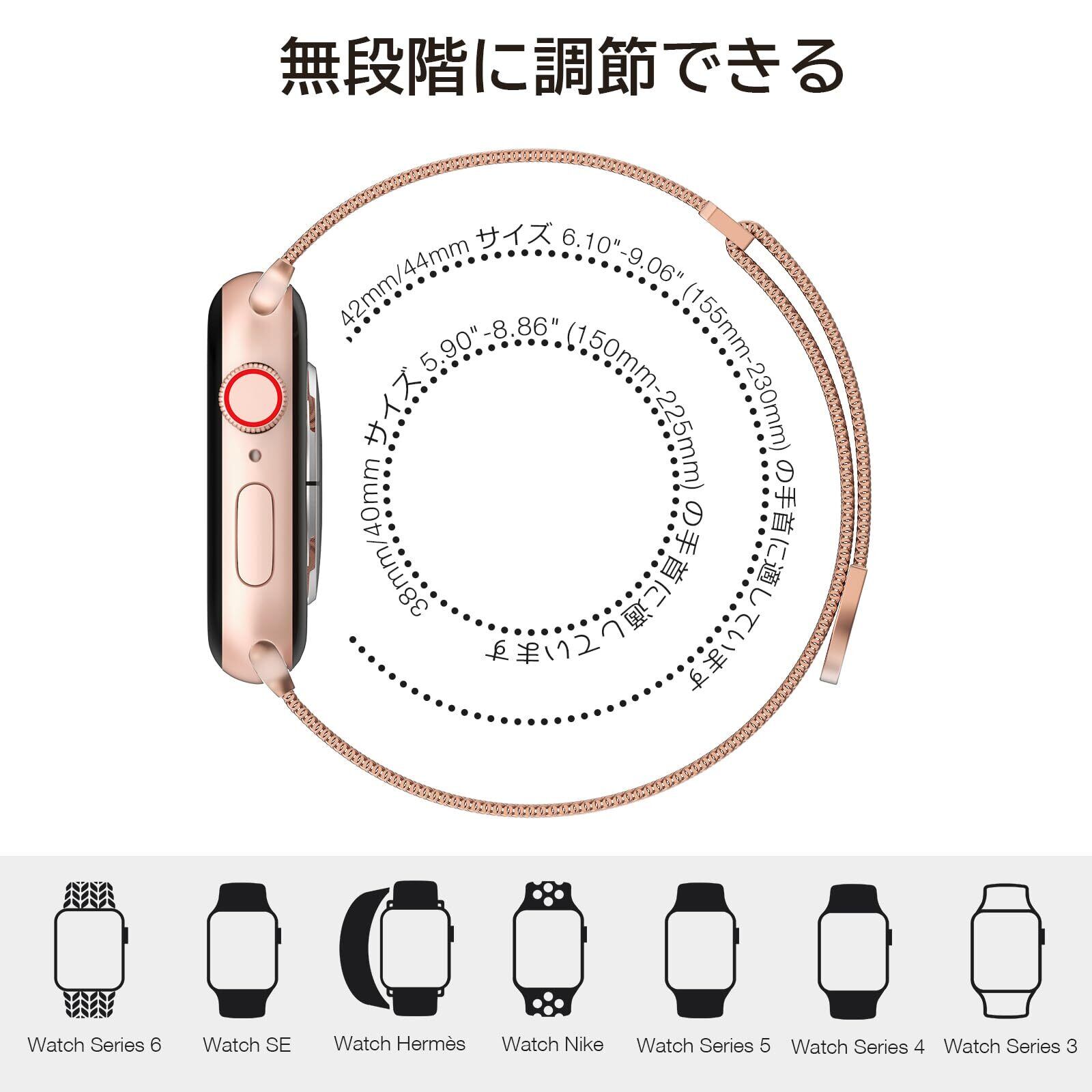 【対応機種】コンパチブル Watch Series Ultra2/Ultra/SE2/SE/10/9/8/7/6/5/4/3/2/1に対応。42mm(Series 10)/41mm/40mm/38mm 手首周り150mm-225mmに適しています。49mm/46mm/45mm/44mm/42mm(Series 3 2 1) 手首周り155 mm〜230 mmに適しています。購入前にご確認ください。