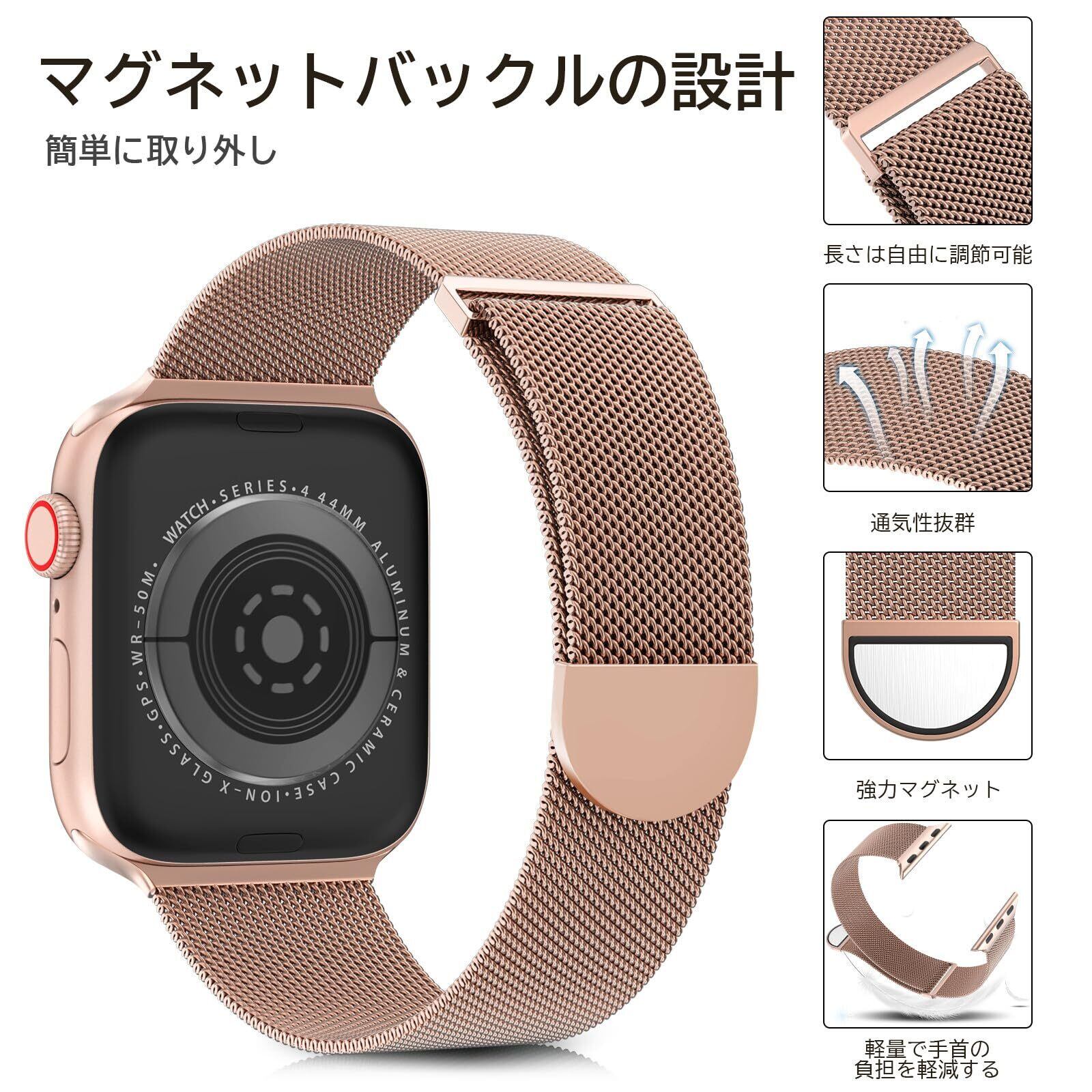 EPULY Apple Watch用のバンド 41mm 40mm 38mm 49mm 46mm 45mm 44mm 42mm アップルウォッチ用のバンド ステンレス留め金製 男女兼用 ベルト磁石 無段階調 調整工具不要 Series Ultra2/Ultra/SE2/SE/10/9/8/7/6/5/4/3/2/1に対応 (シャンパンゴールド)