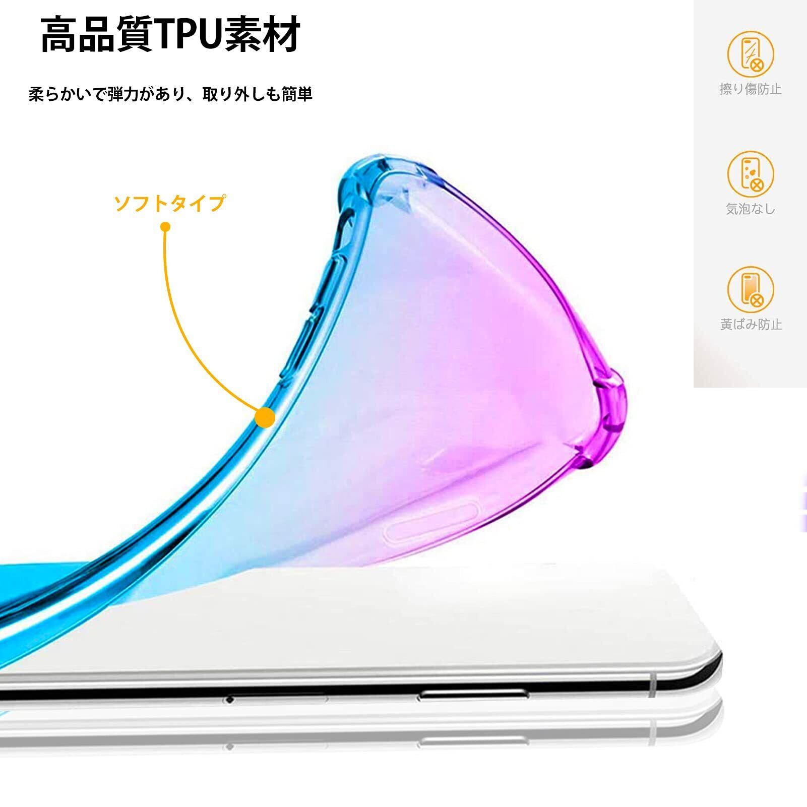 ◆【高品質のTPU素材】高弾性TPU素材を採用、四角を強化することで、落下や衝撃による損傷を軽減します。 画面とカメラを保護するために上げられたベゼル。ケース内側にマイクロドット加工技術により、密着痕(滲み)の発生を防げ、端末の熱を効率的に放出できます。