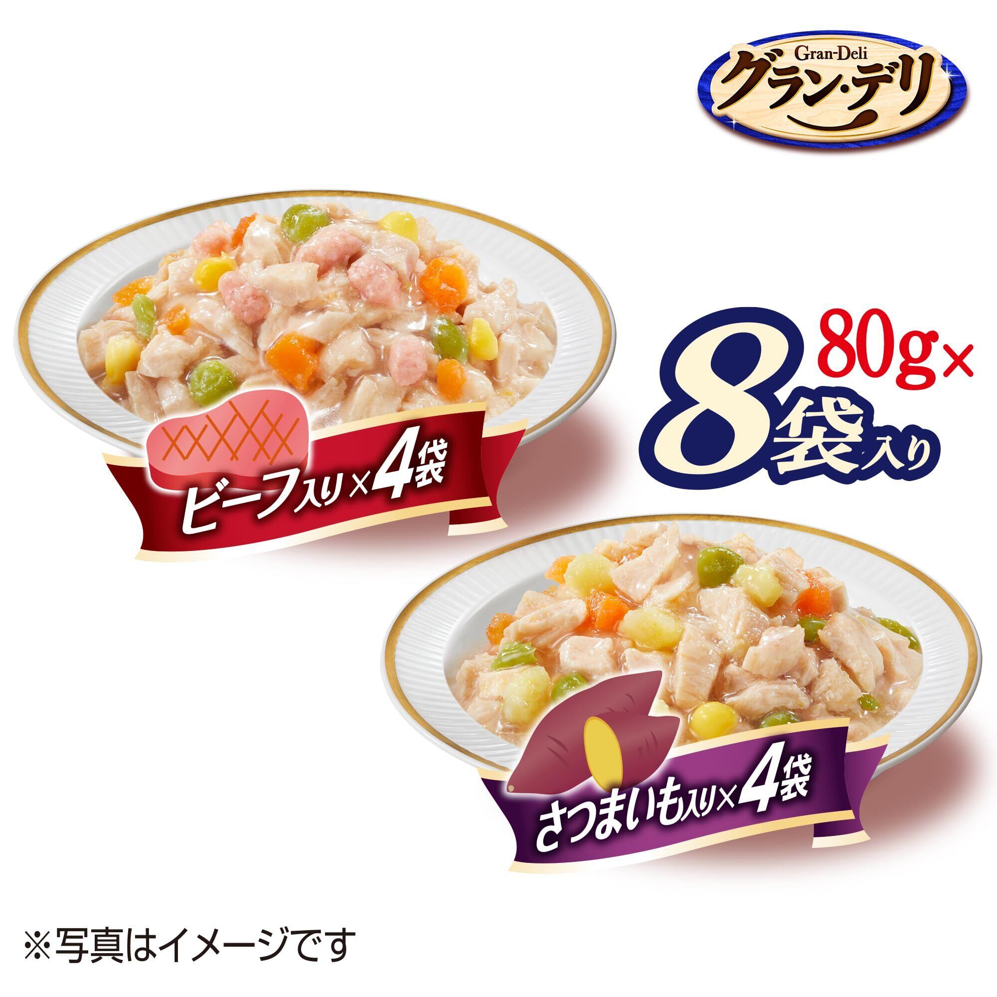 グラン・デリ グランデリ ドッグフード ウェット 国産鶏ささみ パウチ ジュレ 成犬用 8個パック ビーフ入り・さつまいも入り 80g ユニチャーム